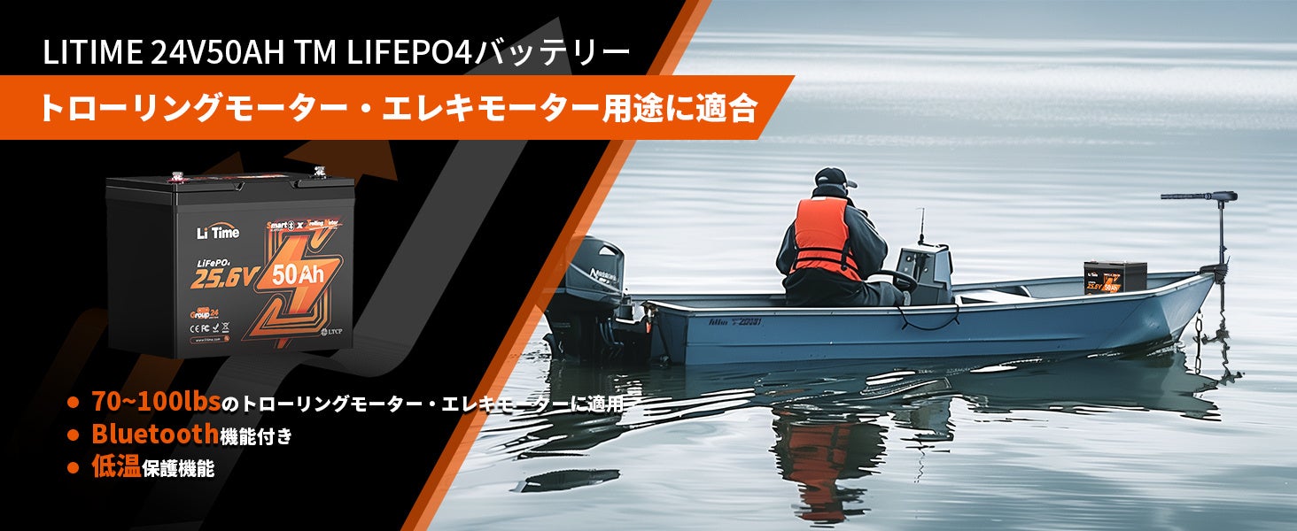 24V50Ah TM リン酸鉄リチウムイオンバッテリー Bluetooth機能 低温保護付き