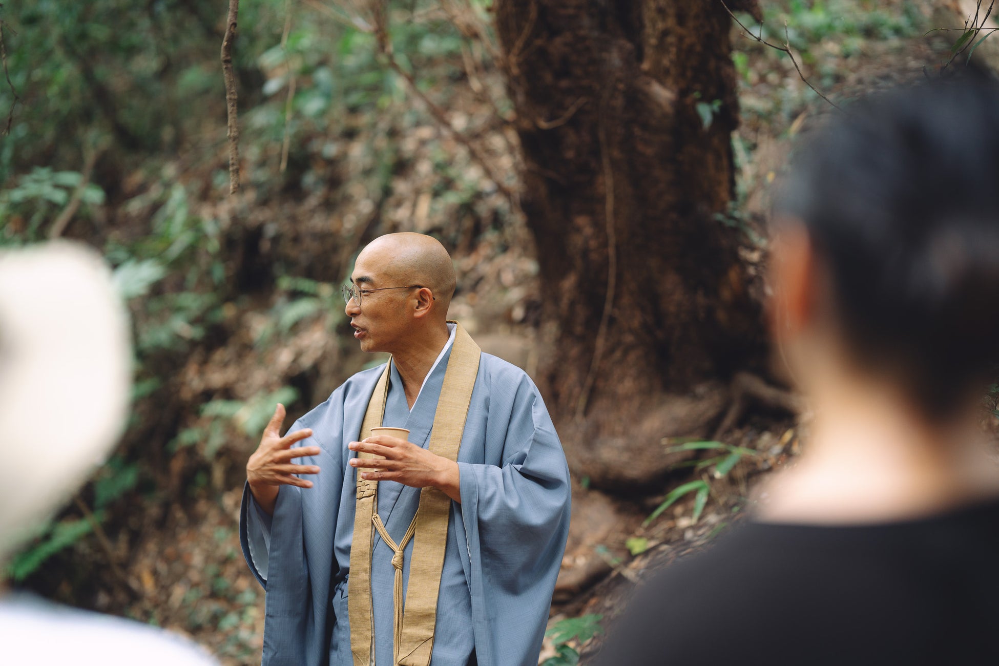 新拠点は房総半島の南に位置する、開山1300年を迎える真野寺の森。ミモザや桜、紫陽花など四季折々の花が彩り鮮やかに咲き誇る花の寺として知られています。内覧会当日はat FOREST代表の小池友紀、真野寺の伊藤尚徳住職や土壌環境アドバイザー鈴木武志氏(神戸大学/土壌学 助教)、森林アドバイザー石井弘明氏(神戸大学/森林資源学 教授)をお迎えし、サービスの概要や今後の展開などもお話ししました。