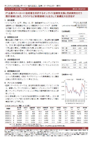 証券リサーチセンターが発行する企業分析レポートは、企業側の開示資料及び企業への取材等を通じて収集した情報に基づき、企業価値創造活動の中長期の持続可能性及び企業評価などの統合的分析結果を提供するものです。