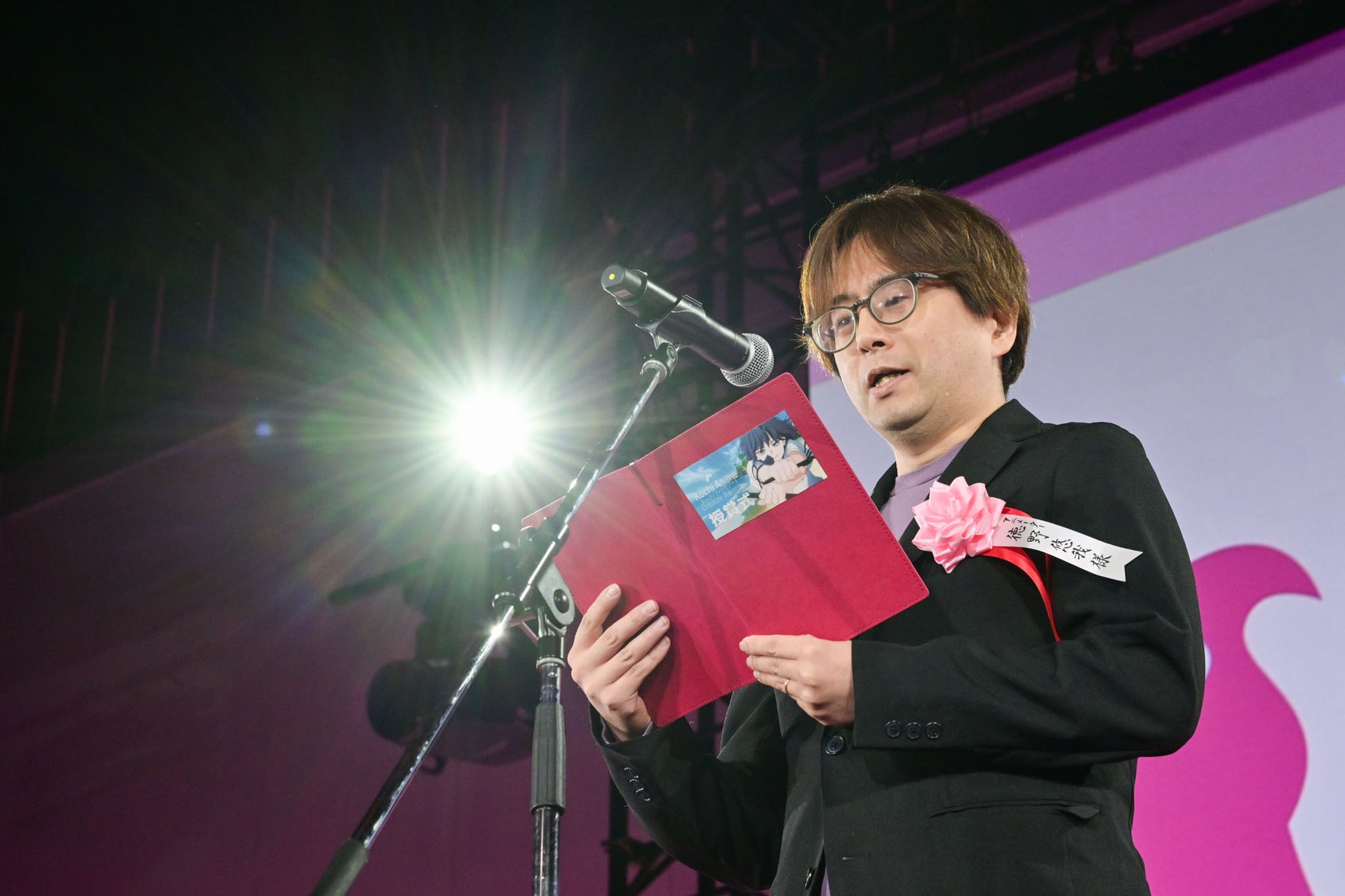 プレゼンターはKADOKAWAアニメ・声優アカデミー 名誉アカデミー長の井上伸一郎さん。「非常に完成度の高いアニメで、見ていてとても楽しかったです」と話していました。