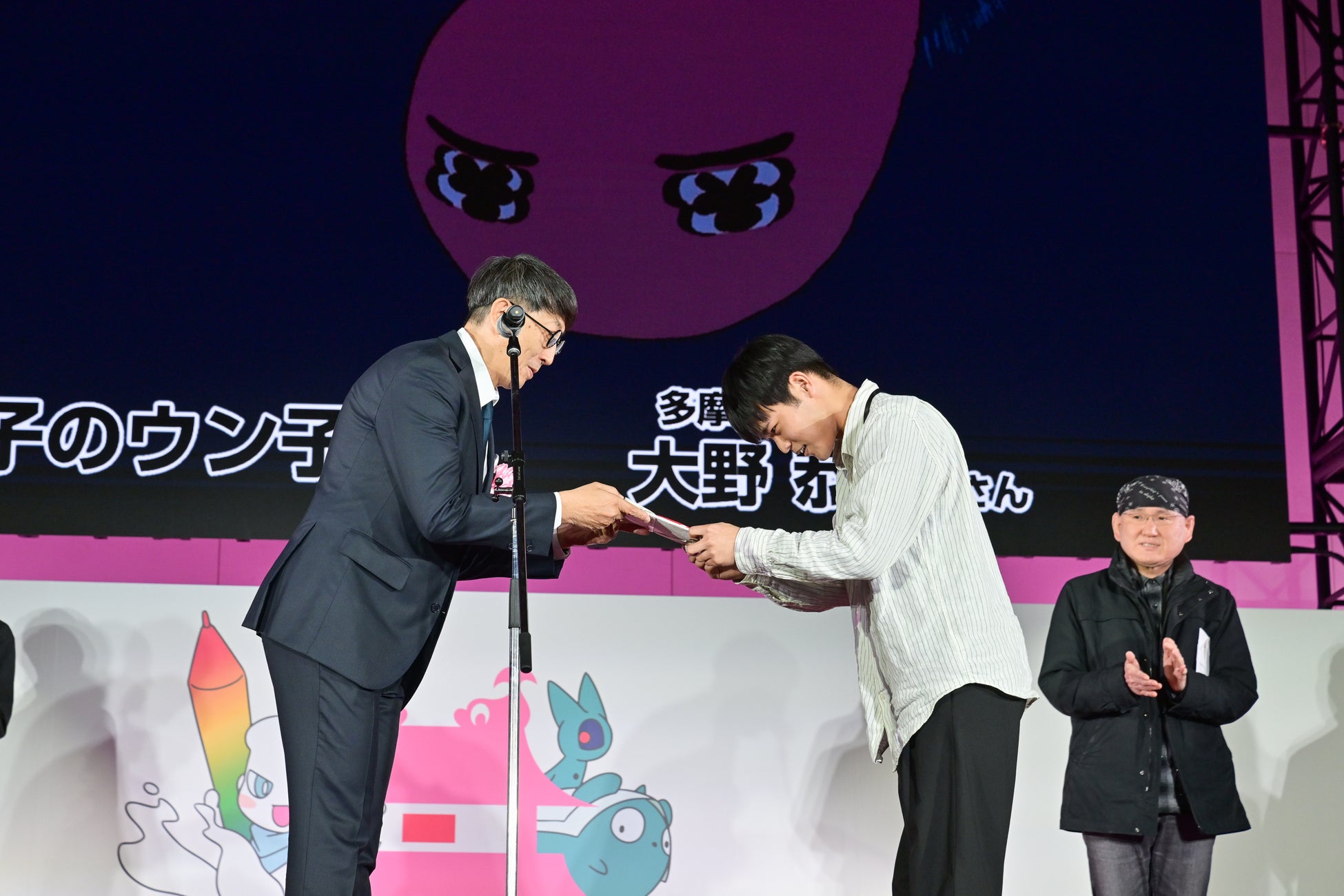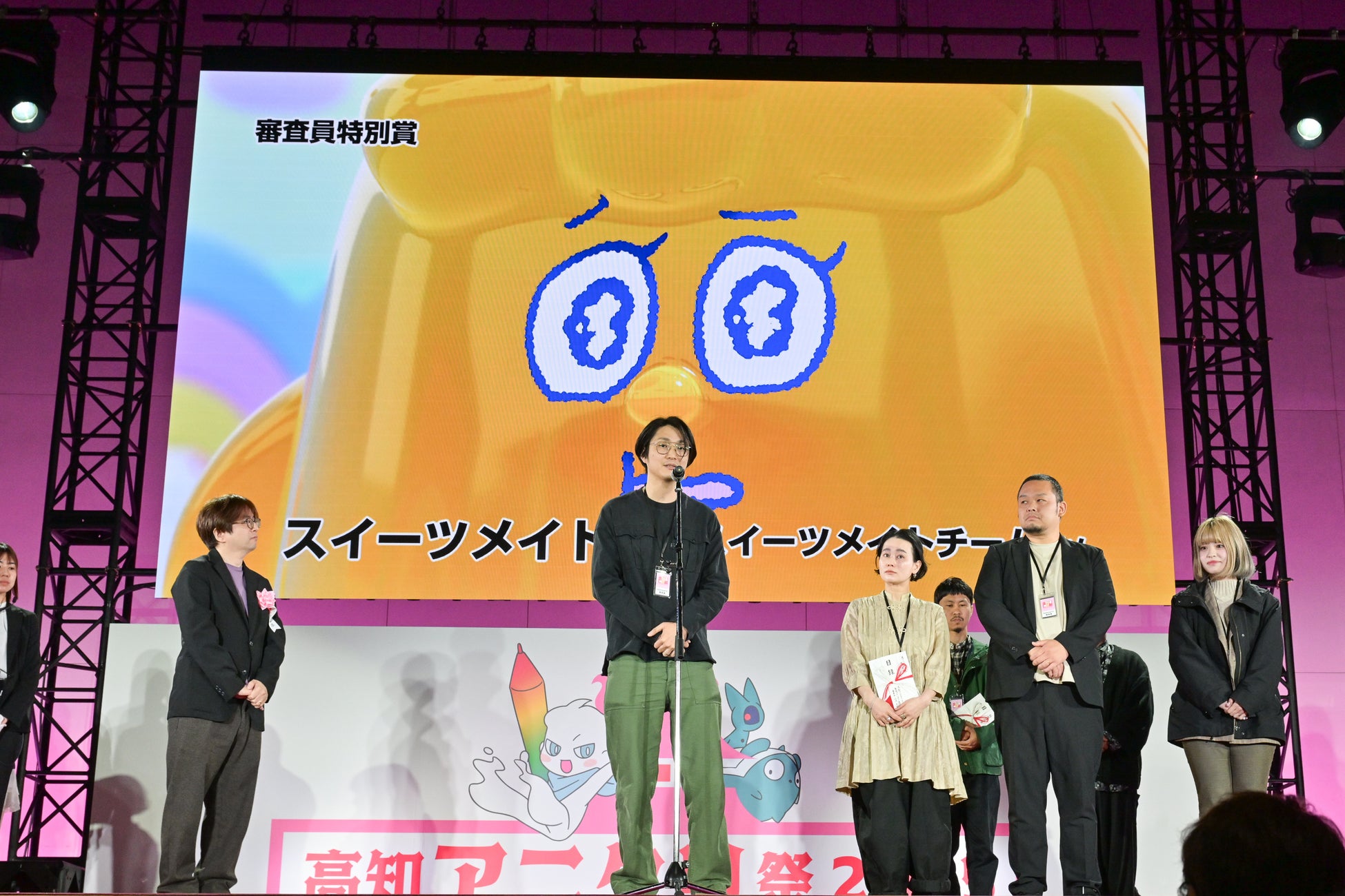 透明標本は、オーディエンス賞と審査員特別賞のダブル受賞。オーディエンス賞プレゼンターは、日本動画協会専務理事の近藤真司さん。「よく考えられた作品で、皆さんの心に刺さるような作品であると思いました。応募してくださった全ての方が、高知から日本、世界のアニメーションを引っ張ってくださればと思います」と声を掛けていました。