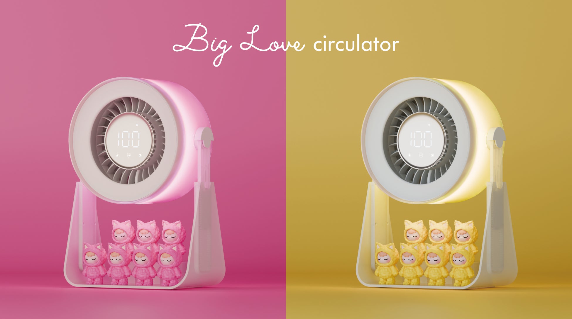さらに、「自宅で推しを可愛く飾りたい」「デスクなどの限られたスペースでも推し活を楽しみたい」といったニーズも見られます。こうした流れの中で、Big Loveシリーズの新製品として、推しのグッズを飾って楽しめるサーキュレーター「Big Love circulator」を開発しました。本製品は自宅のデスクで推しを可愛く飾りながら送風で空間を快適にし、限られたスペースでも推し活を楽しみたい方に適しています。