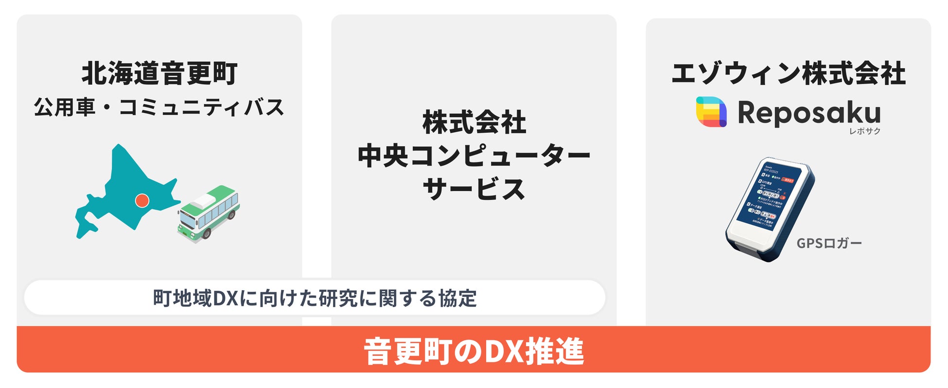 エゾウィン株式会社(本社:北海道標津町、代表取締役:大野 宏、以下「当社」)はこのたび、当社の動態管理システム「レポサク」が、北海道・音更町における公用車等の動態管理に関する実証事業に採用され、2025年6月20日より事業が開始されたことをお知らせします。 本実証事業は、公用車の効率的な運用による「業務効率化」と、コミュニティバスの利用データ分析などによる「住民サービスの向上」を目的としています。 農業分野で培った当社の技術が、行政サービスの多様な課題解決に貢献します。
