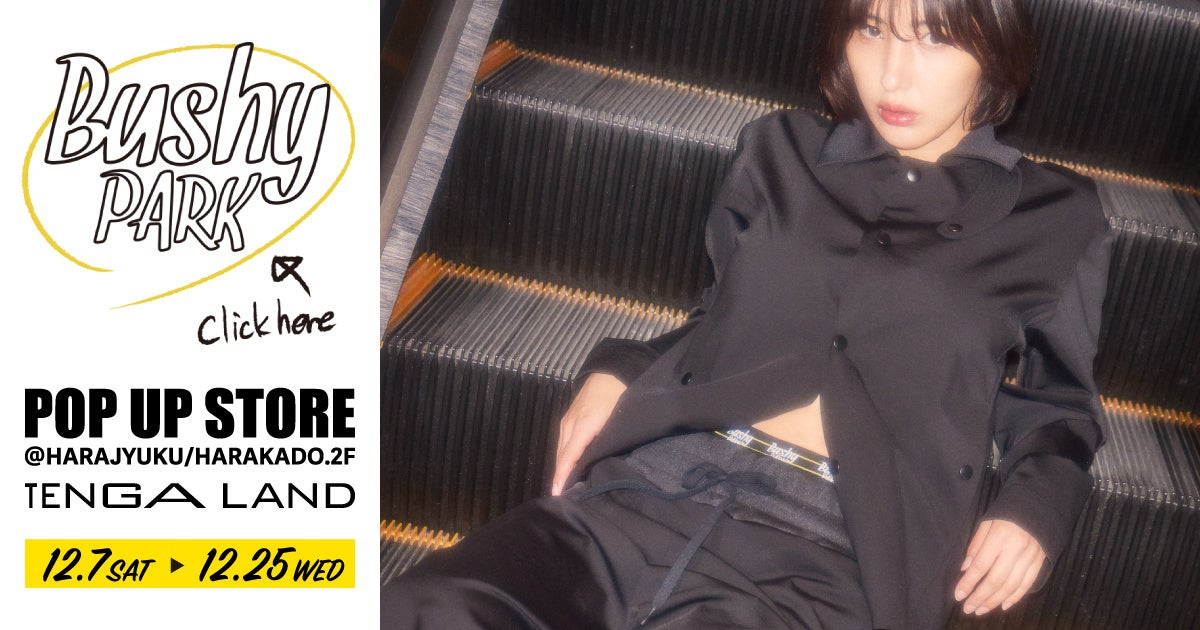 コラボレーションアイテム発売を記念して、12/7(土)〜12/25(水)の間、TENGA LANDでポップアップストアを開催いたします。コラボレーションアイテムのほか、Bushy Parkのオリジナルアイテムや、