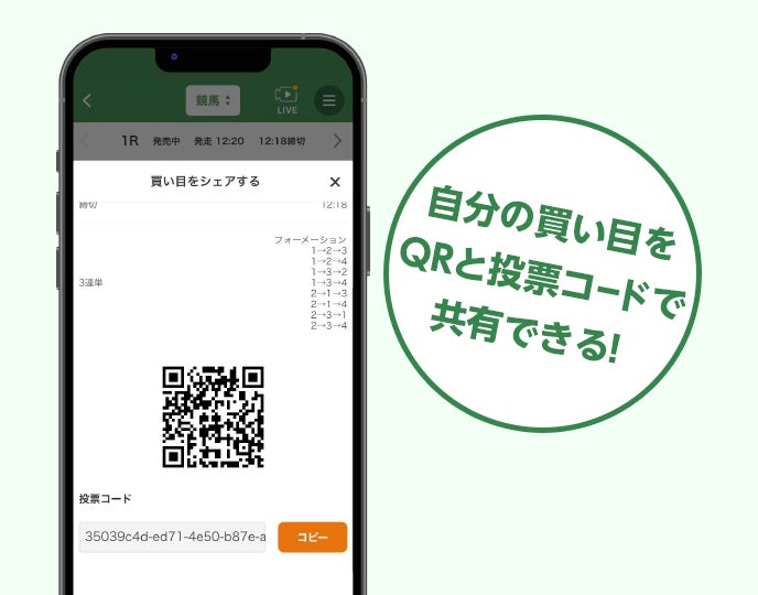 ご自身が予想した買い目の情報をもとに、QRコードを作成できるようになりました。SNSなどでシェアし、みんなで予想やレースを楽しむことができます。