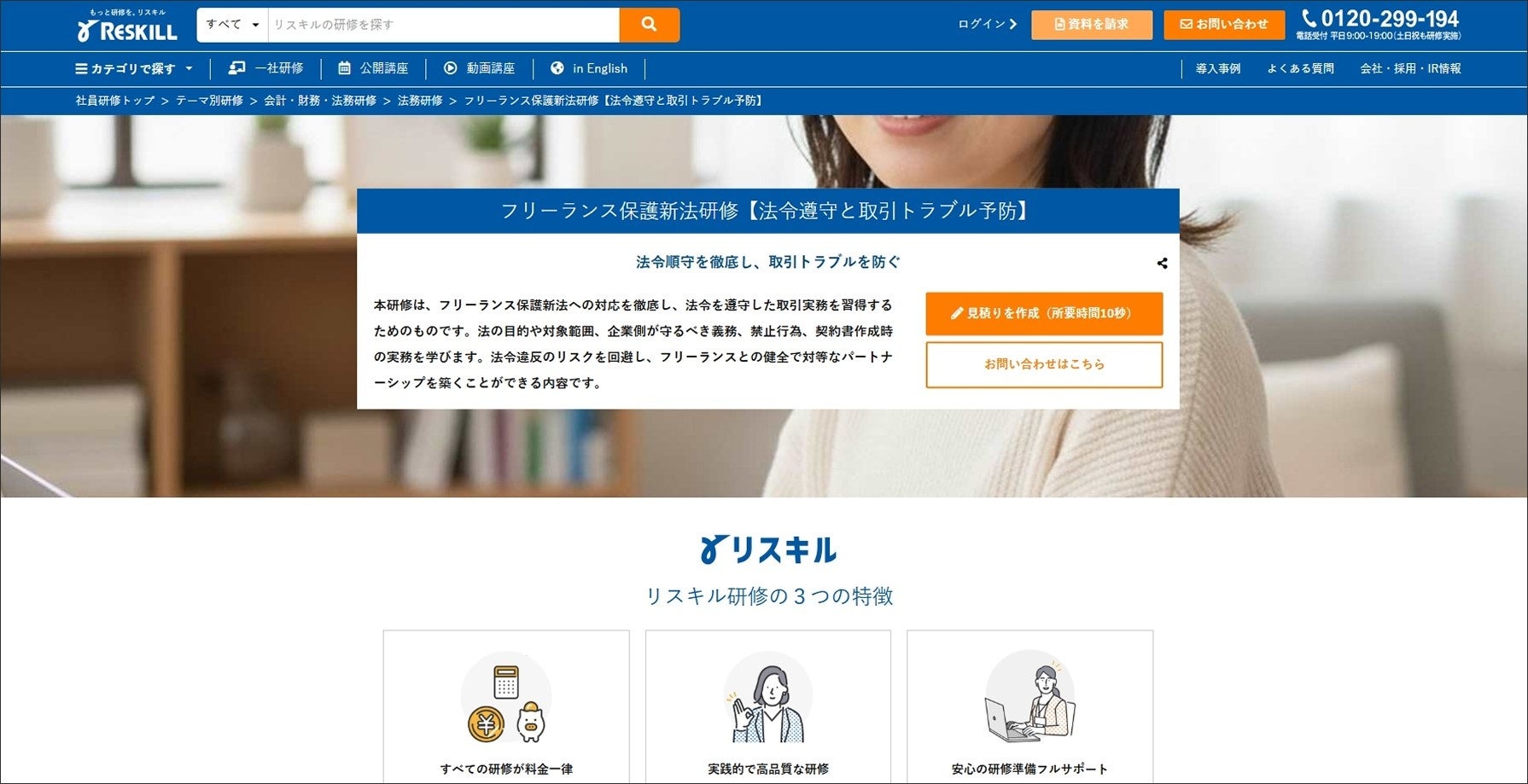 株式会社リスキルは、企業の人材育成を支援する社員研修サービスを提供しています。階層別研修から、コンプライアンス、ハラスメント、法務、ITスキルなど多岐にわたるテーマ別研修まで、豊富なメニューを取り揃えています。実践的で高品質な研修の提供を通じ、企業の人材育成を全面的にサポートしています。本リリースで紹介した研修は「フリーランス保護新法研修」をはじめ法務に関する研修も多く取り扱っています。
