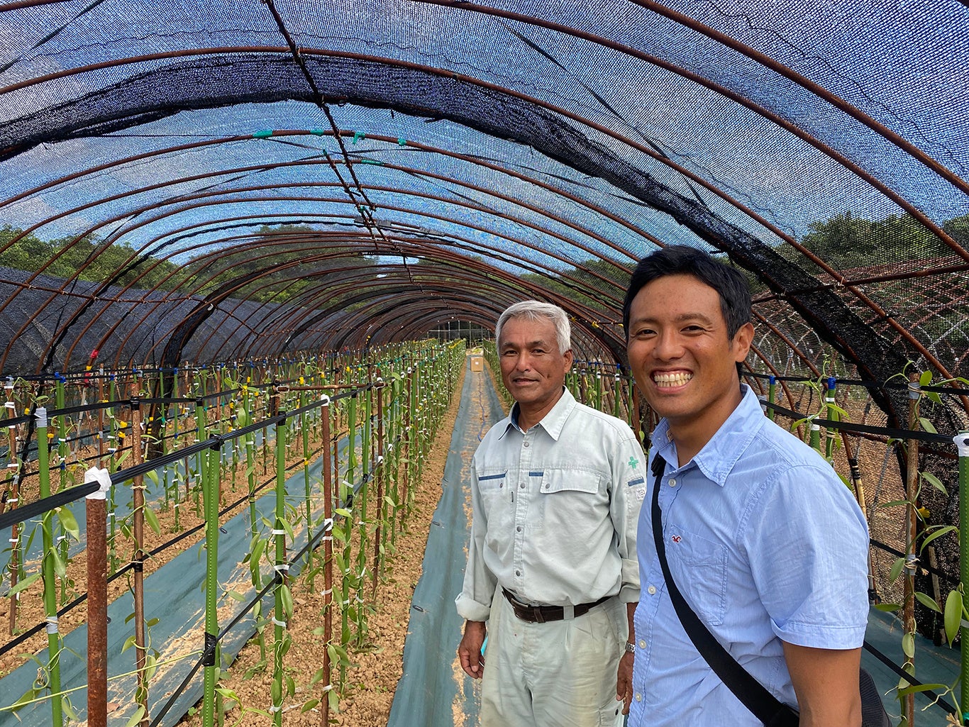 オーナーの林さんご夫婦は、農林水産省時代にタンザニアへの赴任経験があり、タンザニアに強い想いを抱いておられます。バニラビーンズ栽培に興味を持ったのも、タンザニアのバニラ農園を視察、気候や風土が奄美大島似ていると感じたから。帰国後早速起業して、2022年からバニラビーンズ事業を開始されました。