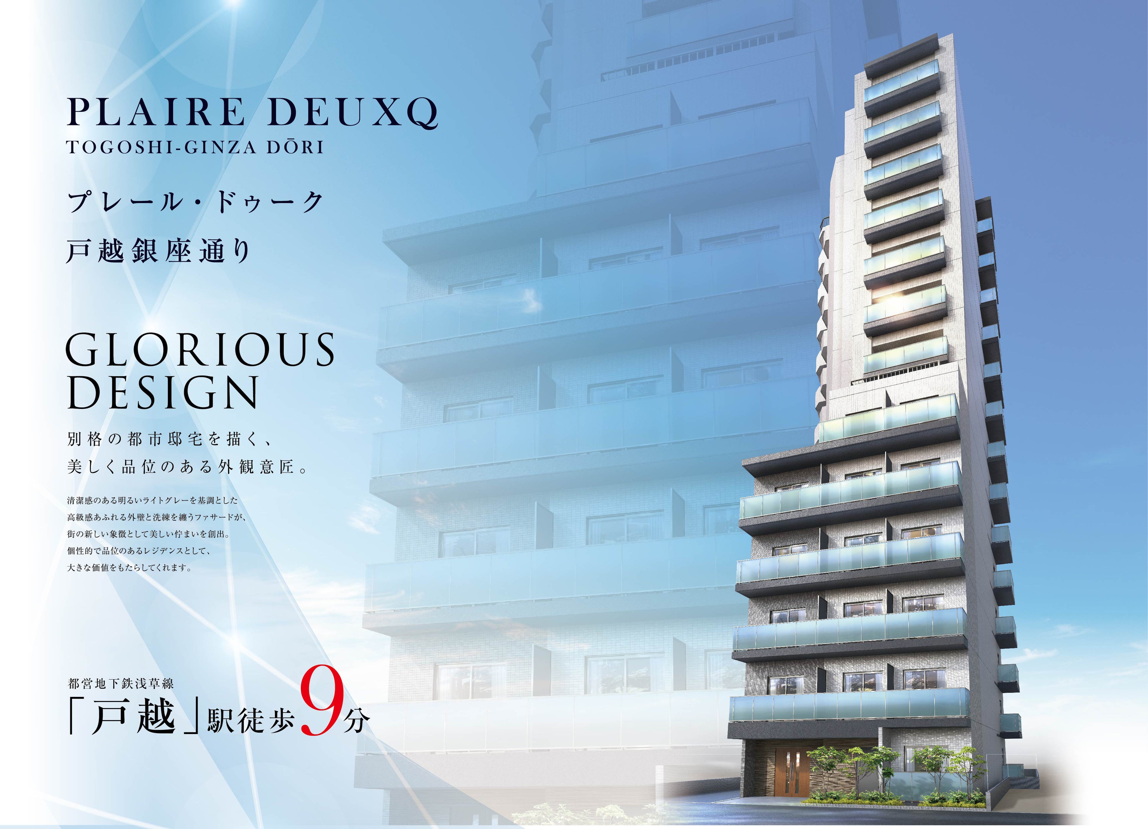 また、私たち木下不動産は9月1日より戸越銀座商店街の通り内に竣工する最新物件「プレール・ドゥーク 戸越銀座通り」の第一期の販売を開始しています。最寄り駅の都営地下鉄浅草線「戸越」駅まで徒歩9分、JR山手線「大崎」駅も徒歩12分と抜群の好立地の物件です。