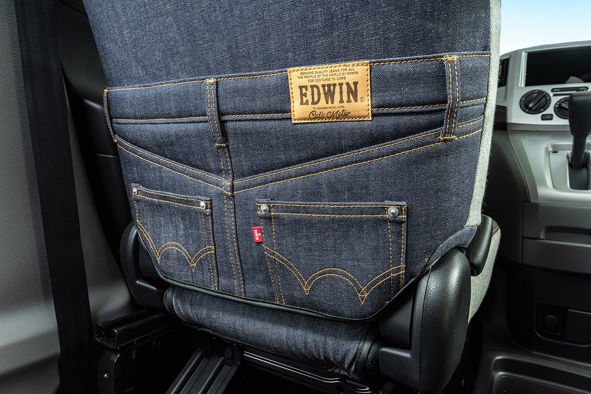 EDWINデニムならではの風合い、「EDWIN」そのものを体感できる専用シートカバーとなっています。