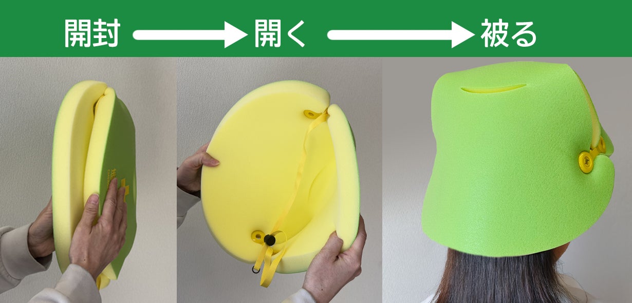 軽量コンパクト。いざという時には頭を守る!ウレタン素材のしまえる頭部保護頭巾をMakuakeプロジェクトにて販売開始