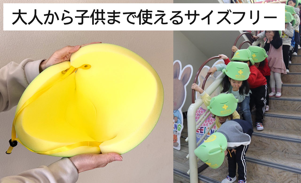 軽くて衝撃吸収に優れたウレタン素材で大人から子供まで避難活動に支障がない頭巾となっています。