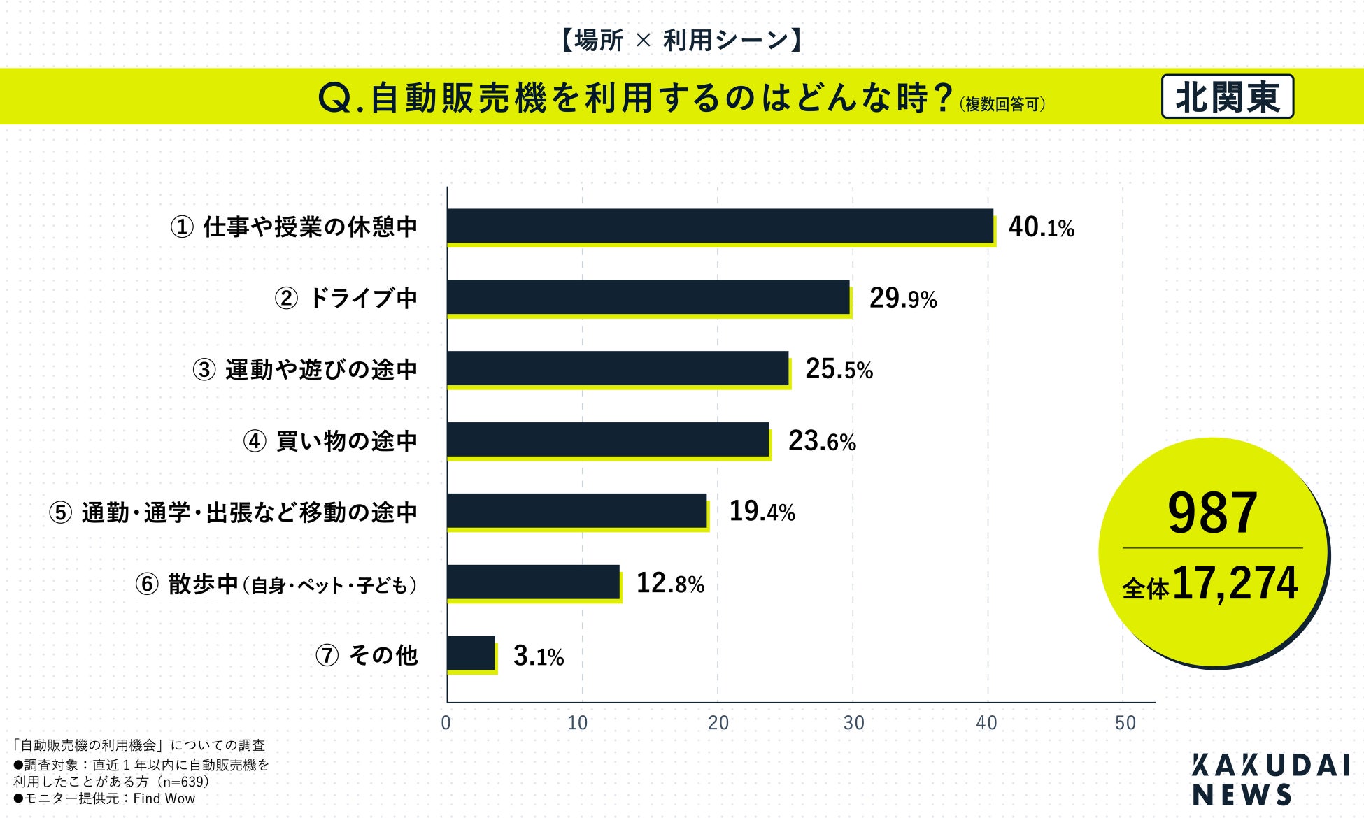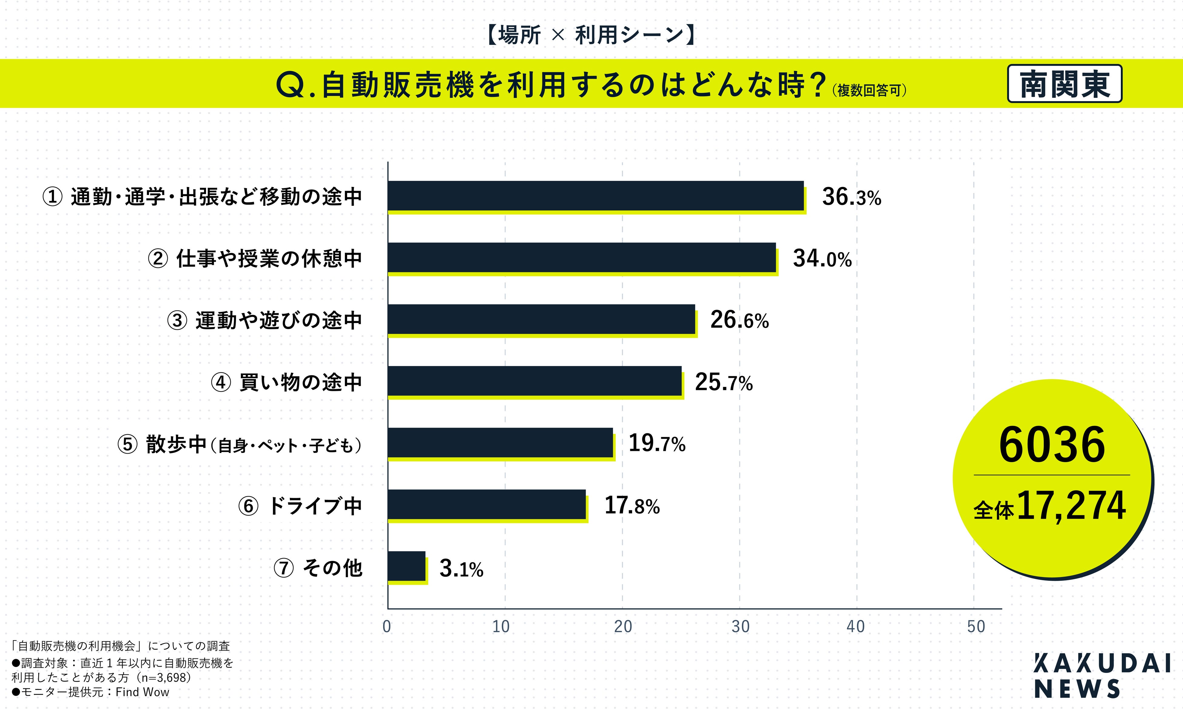 【自販機利用調査】エリア別、自動販売機の利用シーンの違い(東日本編)