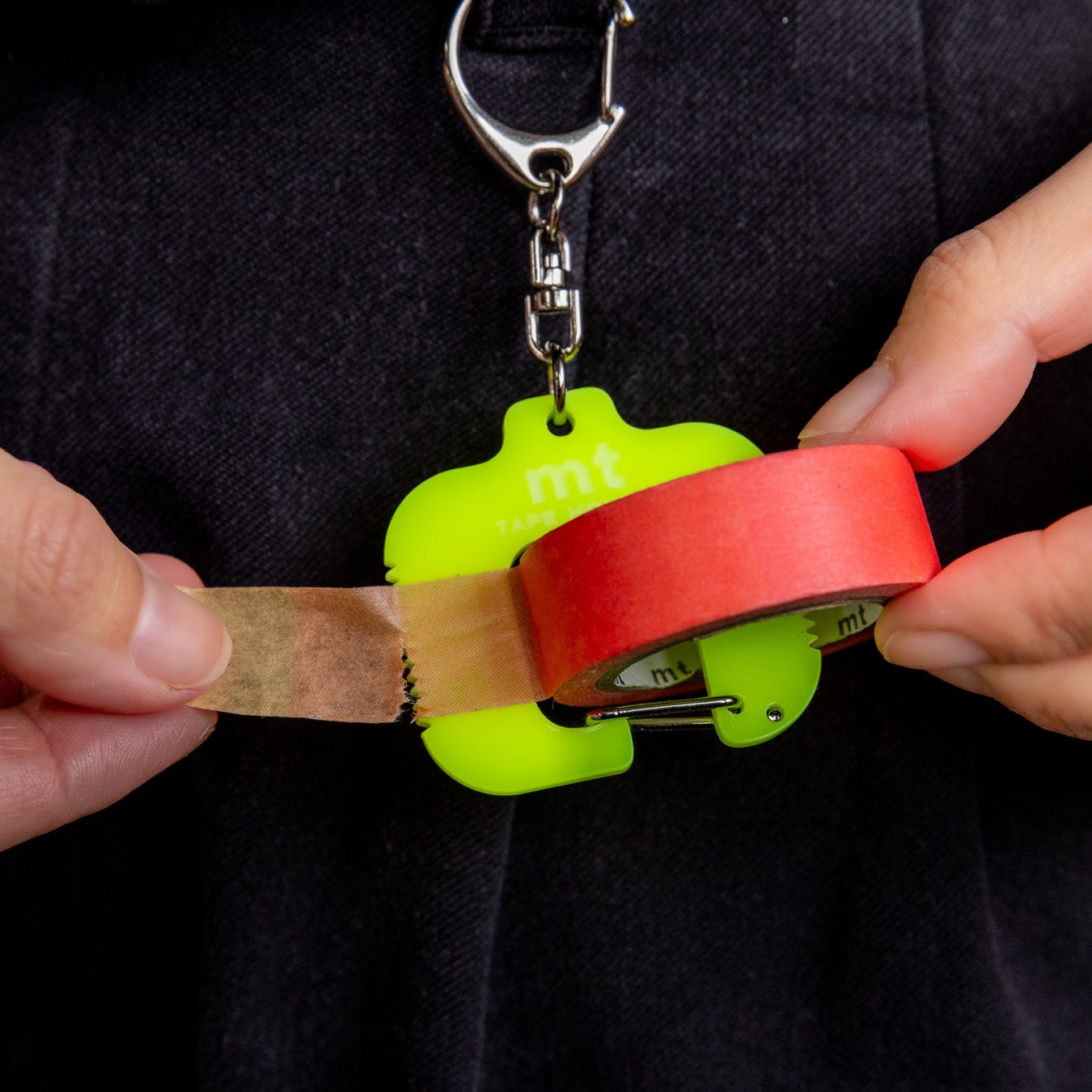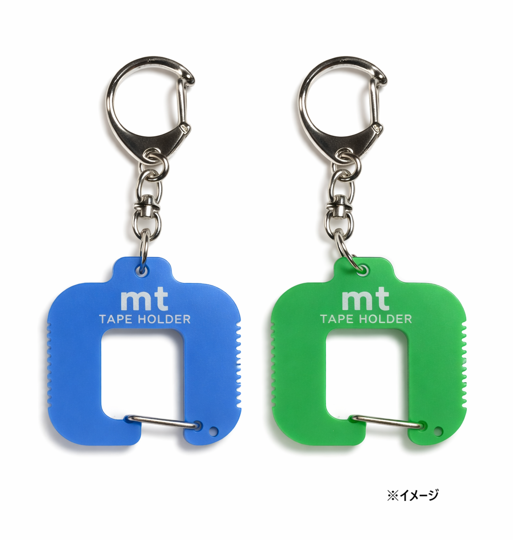 2026年3月に開催したmt KIOSK 2026で限定販売し、SNSなどで大きな反響をいただいた「mt tape holder」に、新色2種が登場しました。お気に入りのマスキングテープを鞄や筆箱などに付けて、アクセサリー感覚で持ち歩くことのできるmt tape holder。本体のギザギザ部分はテープカッターとして使え、外出先などでも便利にマスキングテープをお使いいただけるアイテムです。