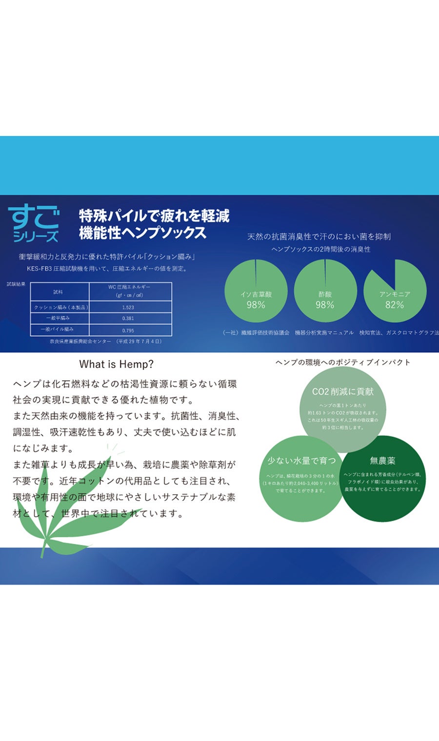 サステナブル素材として注目を集める「ヘンプ」を使用 「#すご」シリーズから機能性に優れ歩行時の疲れを軽減するソックスを発売
