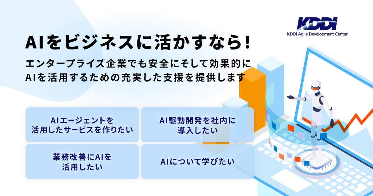 KDDIアジャイル開発センター株式会社(本社:東京都港区、代表取締役社長/CEO:木暮 圭一、以下 KAG)は、エンタープライズ企業が安全かつ効果的にAIを活用するための包括的な支援サービス群「KAGAI AGILITY Suite」の提供開始します。