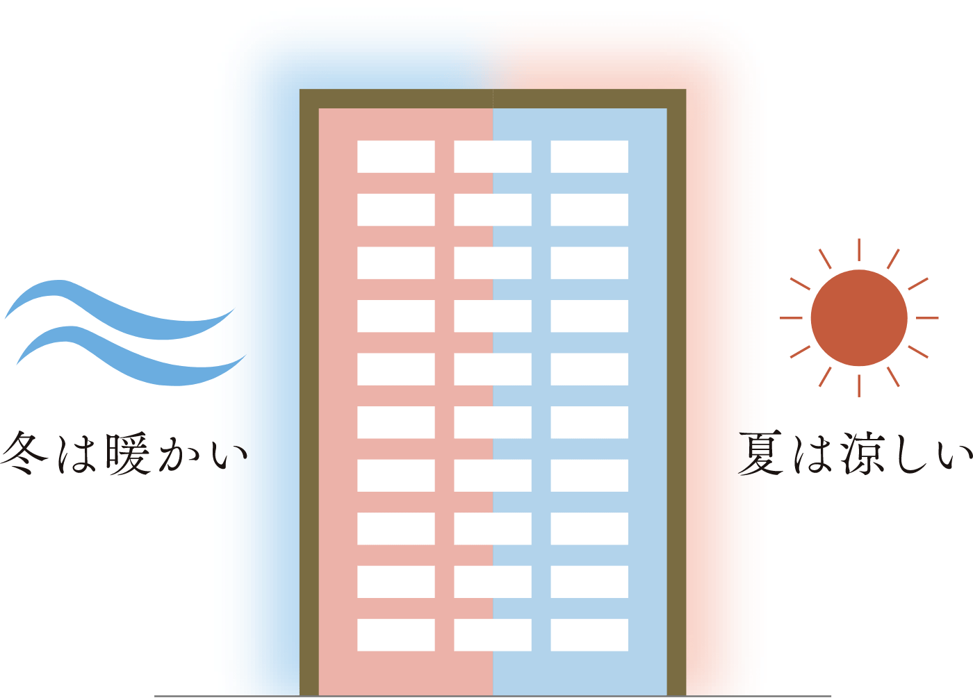 ルジェンテ西日暮里は、当社分譲マンション「L’GENTE(ルジェンテ)」シリーズ初の「ZEH-M Oriented」採用商品となり、断熱性の高い建物のつくりや、省エネ設備・仕様の採用によって、これからの時代に求められる健康的でサステナブルな住まいを実現しました。