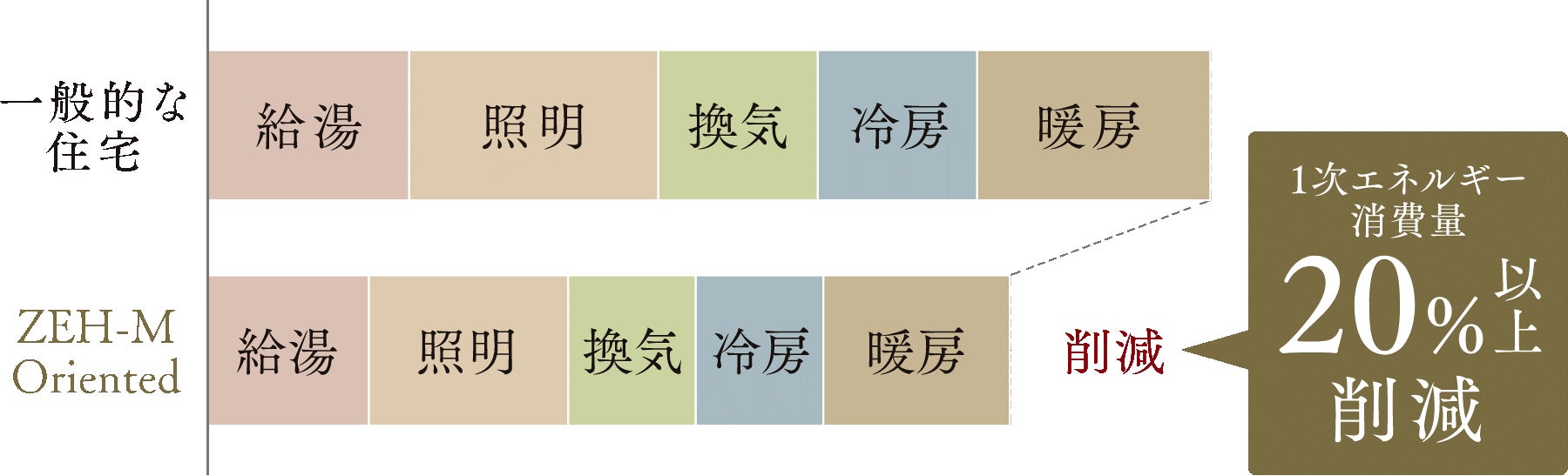 Oriented」は、強化外皮基準(断熱性能)を満たし、省エネによる一次エネルギー消費量を現行の