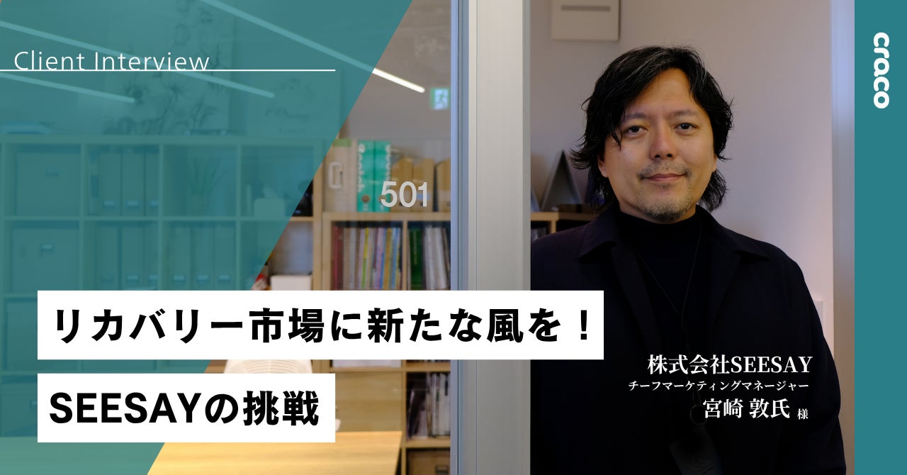 世の中を「新しい」「面白い」価値で満たす挑戦を支援する株式会社craco(本社:東京都世田谷区、代表取締役:溝橋 正輝)は、株式会社SEESAY(ご担当者:宮崎 敦氏様)の弊社サービス導入事例インタビューを、自社ホームページにて公開したことをお知らせします。