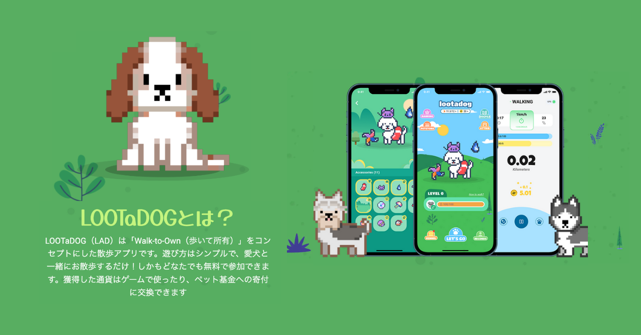 LehmanSoftが開発するLOOTaDOGは、日常の散歩をゲーム化し、Web3わんこ育成を楽しめるアプリです。アプリからワンストップでペットライフを豊かにすることを目標としています。