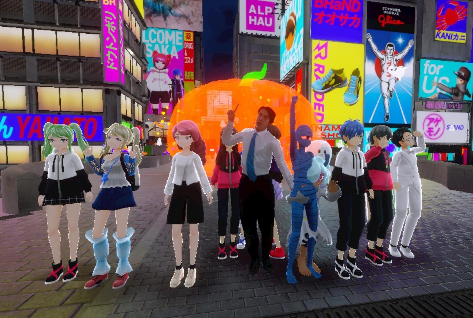 バーチャルハロウィーンと人気バラエティ番組がコラボレーション。ハロウィーンの夜を”笑い”で彩る特別編に人気芸人のとにかく明るい安村さん、マヂカルラブリーさん、三四郎さん、四千頭身さん、タイムマシーン3号さん、きつねさんが登場。懐かしのキャラたちが大集合して行われた”壁反省会”をαU YouTubeチャンネル、バーチャル大阪で配信しました。また翌日の10月29日には「トークライブ延長戦」と銘打ち、マヂカルラブリー・野田クリスタルがバーチャル渋谷と大阪を散策。参加者からの「筋肉悩み相談」を受けたり、記念撮影をする等盛り上がりました。