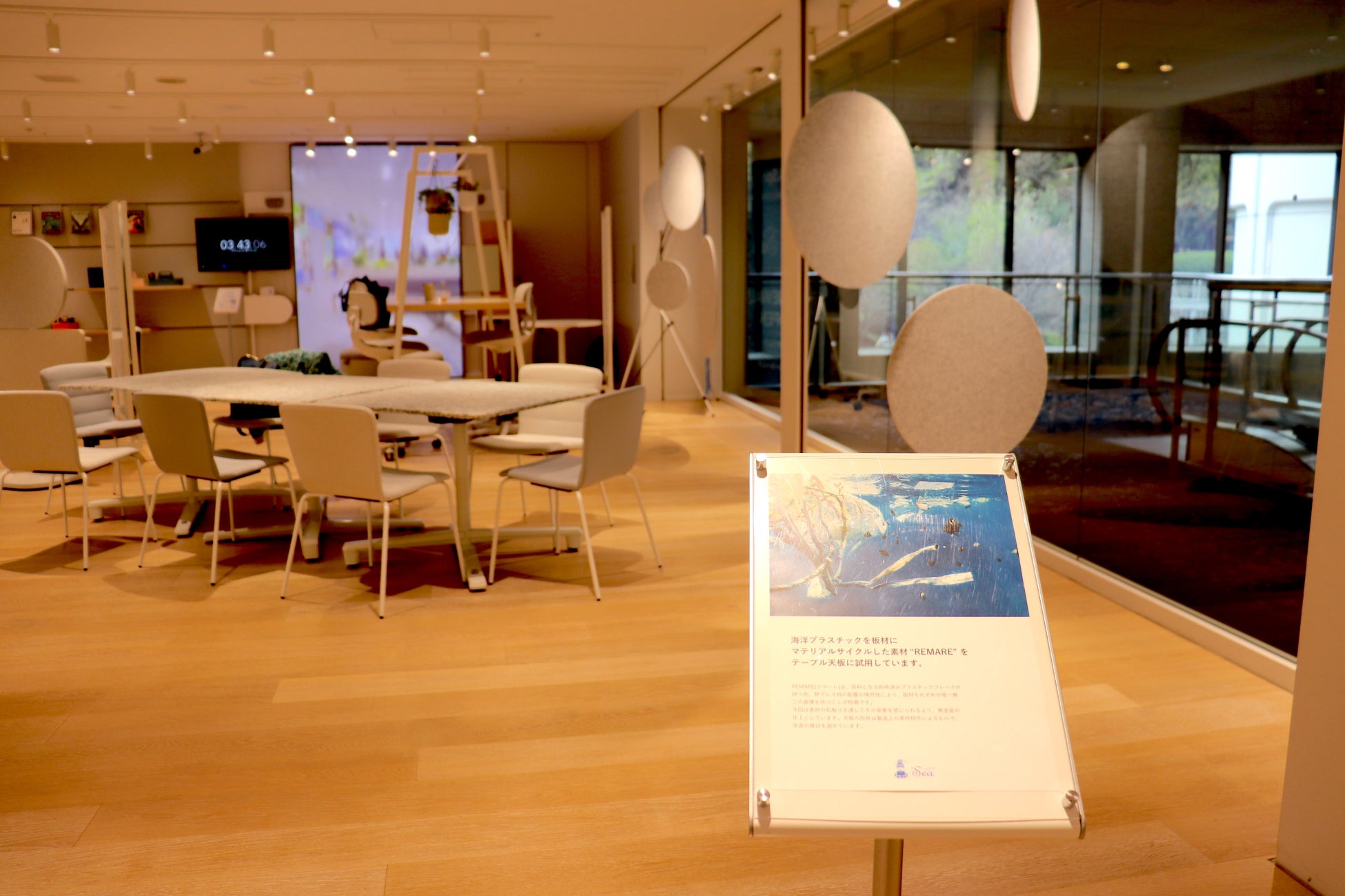 株式会社REMARE、オカムラが手掛ける共創空間「Open Innovation Biotope “Sea”」のリニューアルオープンに際し、海洋プラスチックをマテリアルリサイクルした家具を共同制作