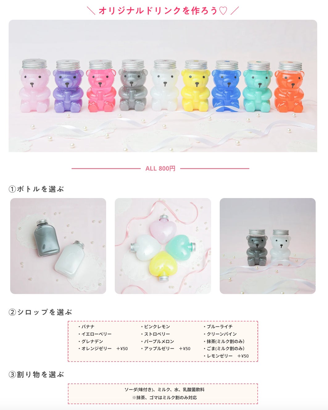 オリジナルフードやドリンクを作成することができます。