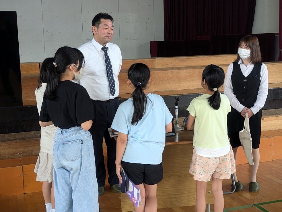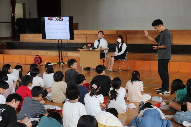 2024年9月24日(火)には、当社より2名が上山小を訪問し、体育館に集まった5年生に対して、リリッカについての説明や商品開発のヒントをお伝えしました。リリッカでは市内の実店舗でサンドイッチや総菜パン、菓子パンなどを販売しているだけでなく、オンラインストアを通して全国へ販売を行っていることを知ると、自分たちの考案したパンが全国へ広がる可能性に、子ども達は目を輝かせていました。