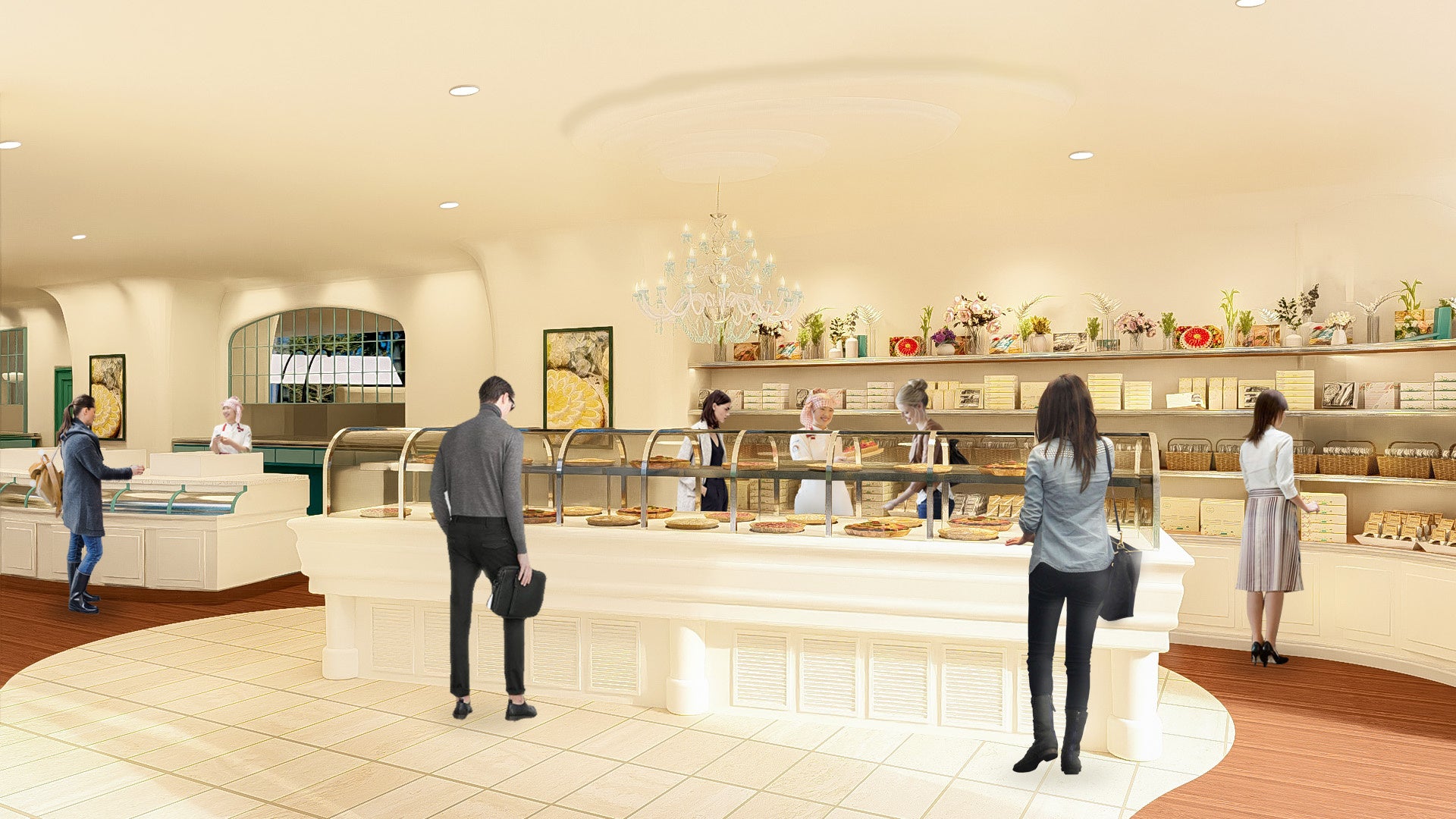 新店舗は、キルフェボンのスタイルである“お客様に寄り添いながらケーキ選びのお手伝いをする”をコンセプトに360度から見渡せるオリジナルのショーケースを設置し、ゆっくりとケーキをご覧いただけます。また装飾チーム“デコラトリス”が手がけるディスプレイで彩られた温かみのある店内をお楽しみいただけます。
