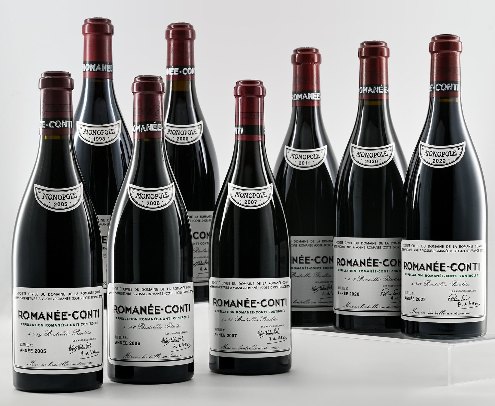 (ドメーヌ ド ラ ロマネ コンティ)が128ロット(落札予想価格下限合計68,350,000円)と多数出品されます。そのうち16ロット(同 24,800,000円)を占めるのが「ロマネ コンティ」で、1970年から2022年ヴィンテージまで幅広い年代が揃いました。