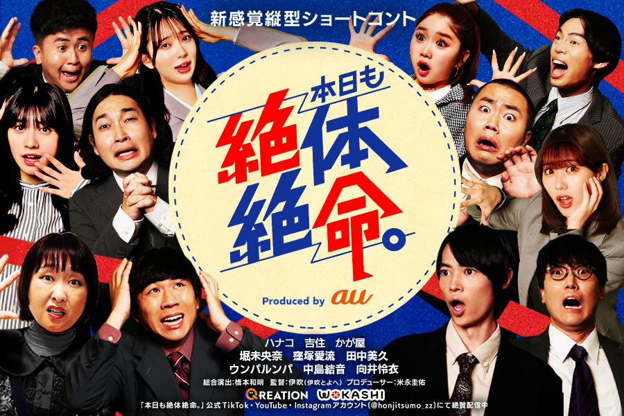 本コンテンツでは、「絶体絶命」をテーマに、ハナコや吉住、かが屋といった実力派コント師と、堀未央奈、窪塚愛流、田中美久など話題の若手俳優、さらにウンパルンパ、中島結音、向井怜衣などのTikTokクリエイターといった、”コント師×俳優×TikTokクリエイター”の異色の布陣で繰り広げられる新感覚縦型ショートコントを配信しております。