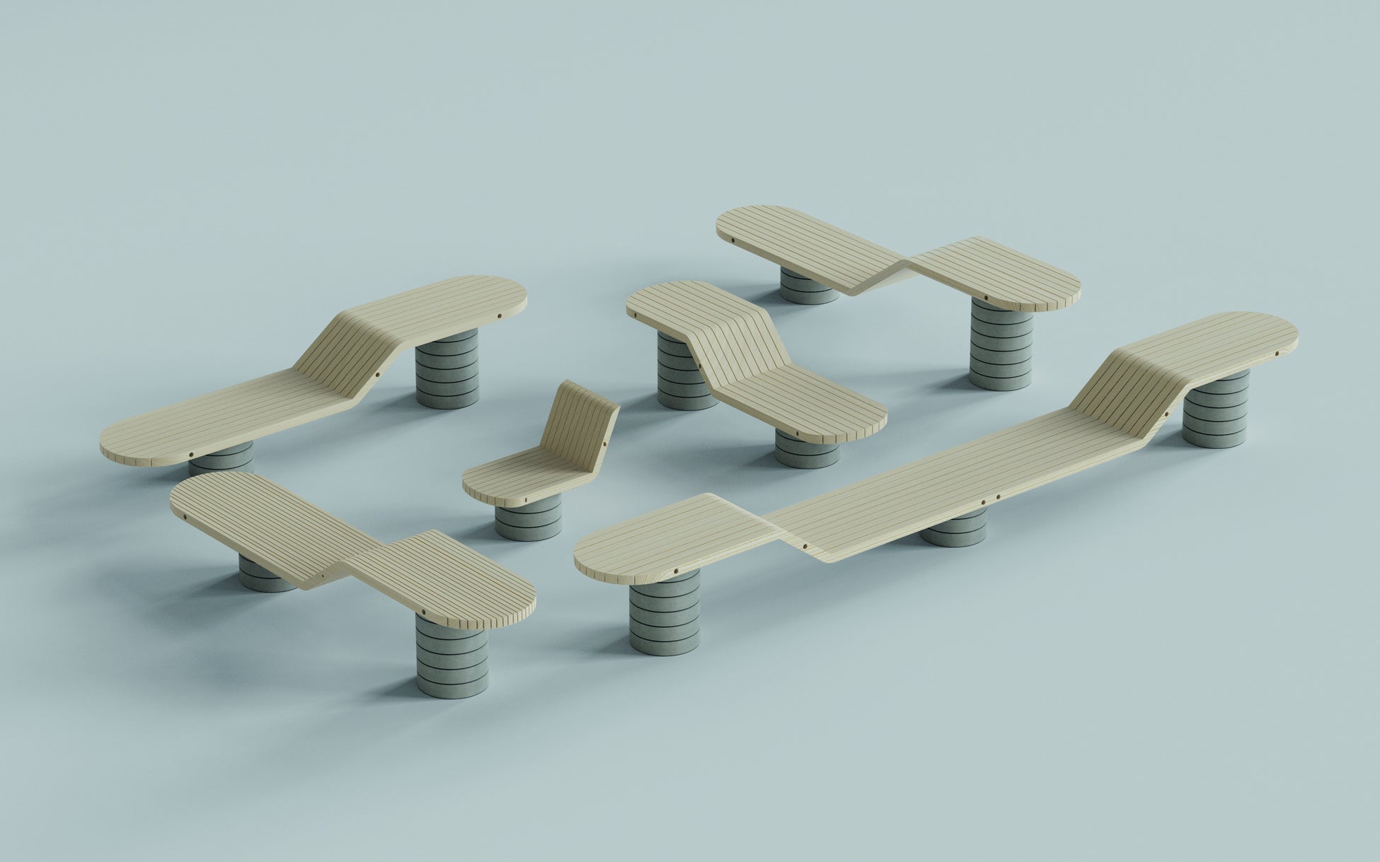 Weißensee Kunsthochschule BerlinのNick Geipelによってデザインされ、Niklas Bildstein Zaarの指導のもと開発されたこのベンチシステムは、公共空間におけるデザインを推進するもので、インクルーシブな空間づくりを提唱する都市プロジェクトから着想を得ています。