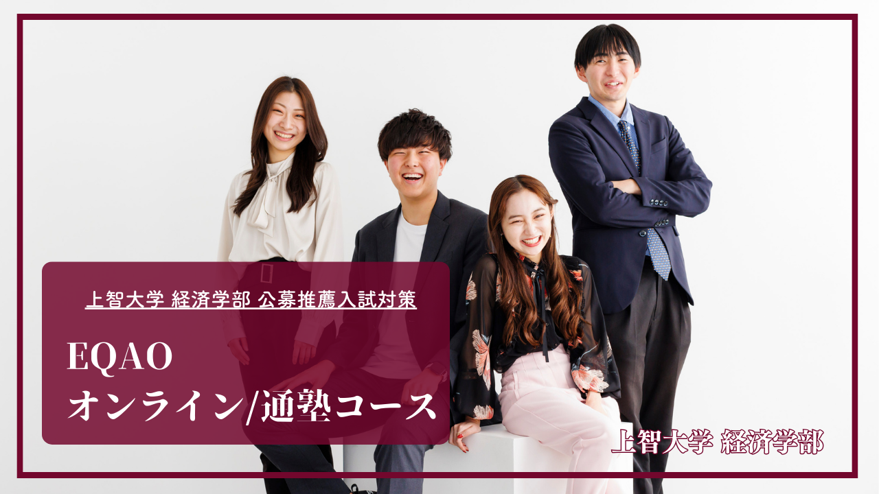 〈公募推薦 上智経済学部特化〉上智公募推薦専門塾EQAO。上智公募推薦で業界最高水準の合格率を誇るEQAO!上智大学経済学部の公募推薦に精通したプロ講師と相談できる【上智経済学部】の無料相談受付開始!