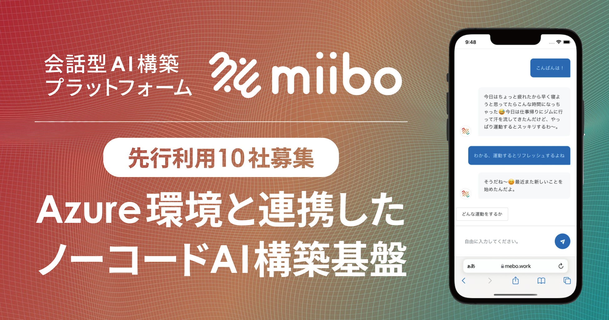 【先行利用10社募集】セキュアなAIプロダクト開発を実現!miiboがAzure環境と連携したノーコードAI構築基盤を提供開始。
