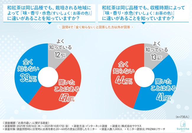 「和紅茶は同じ品種でも、収穫時期によって『味・香り・水色(すいしょく:お茶の色)』に違いがあることを知っているか」と尋ねたところ、下記のような回答結果となりました。