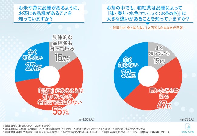 株式会社サクラス(所在地:東京都中央区、代表取締役:山本 謙介)は、日常的にお茶を飲む20~60代の男女を対象に、「お茶の違い」に関する調査を行いました。