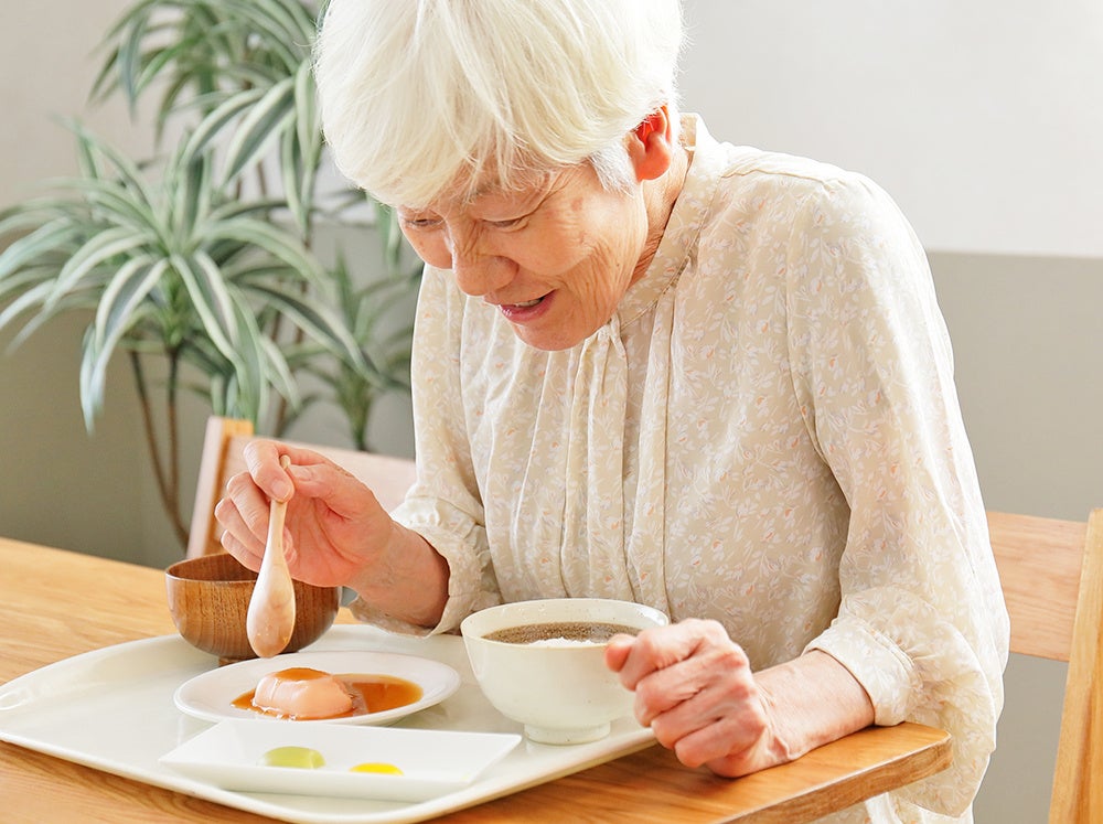 舌でつぶせるほどやわらかく、飲み込みやすいように工夫した介護食。