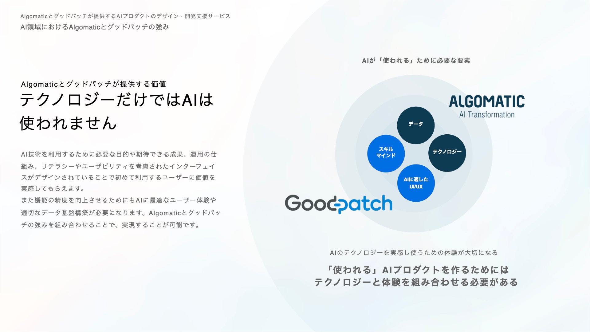・Algomaticはグッドパッチと共同でAIプロダクトのデザイン・開発支援サービスの提供を開始した