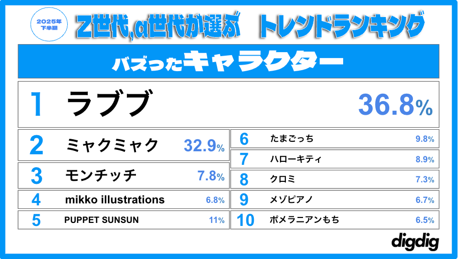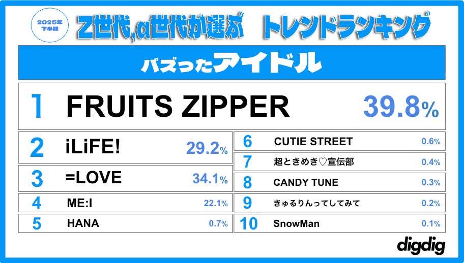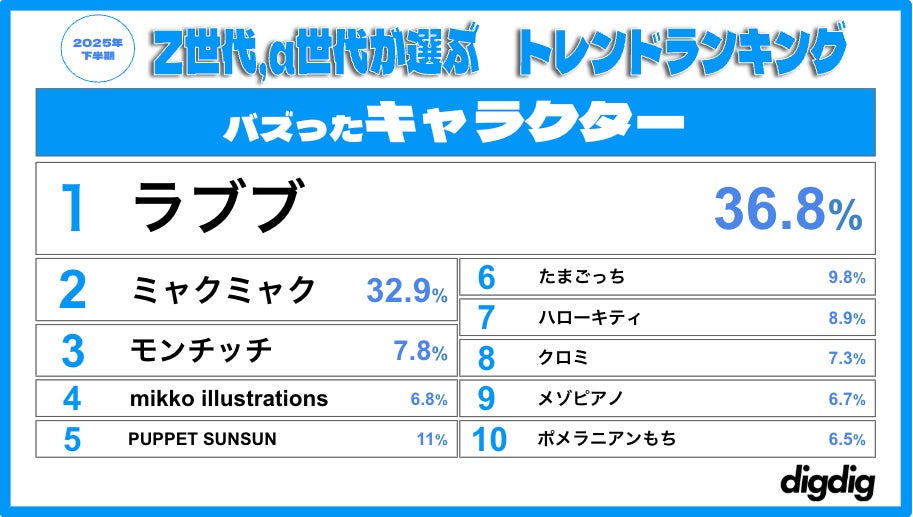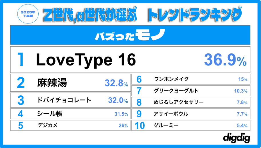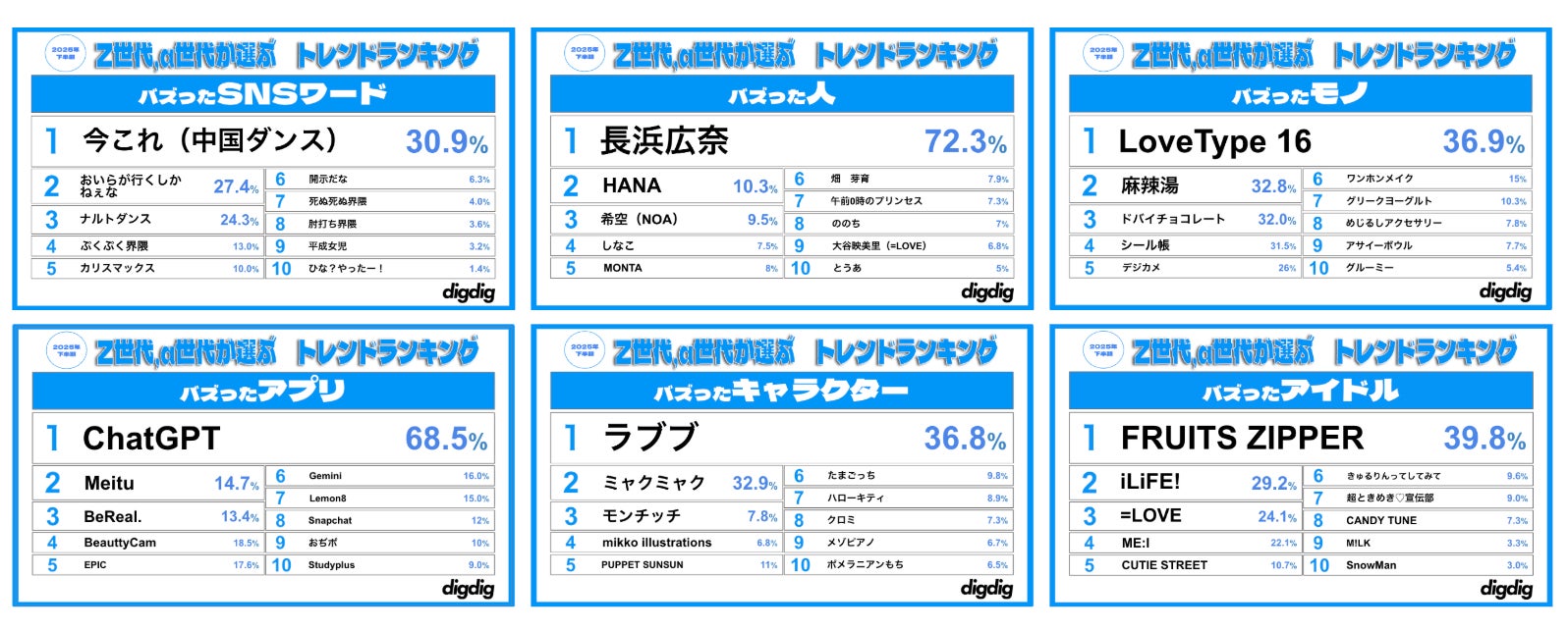 「Z世代・α世代が選ぶ2025下半期トレンドランキング」を株式会社digdigが発表!