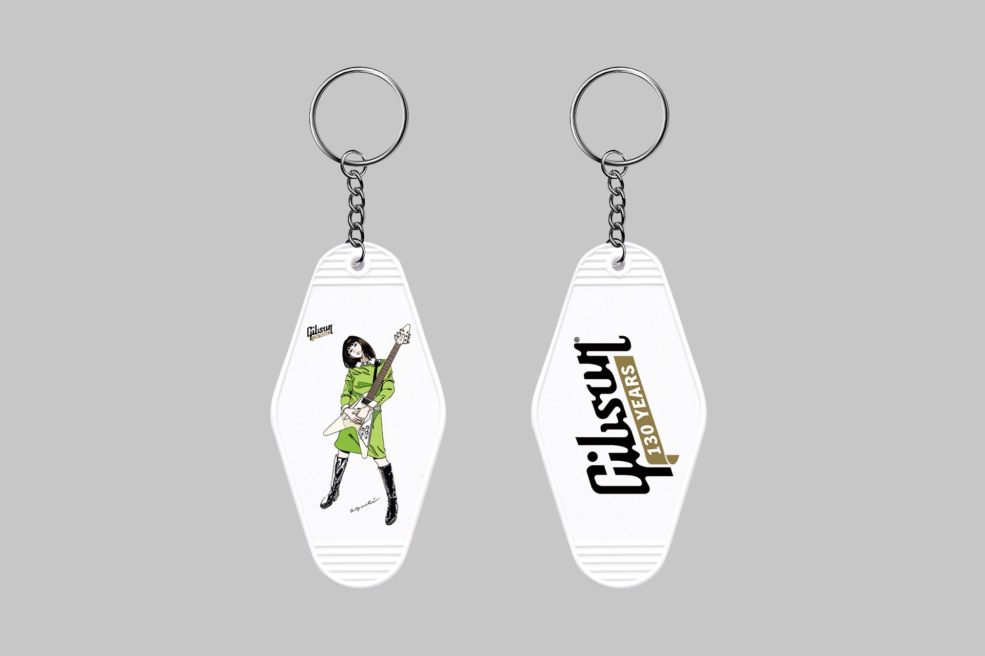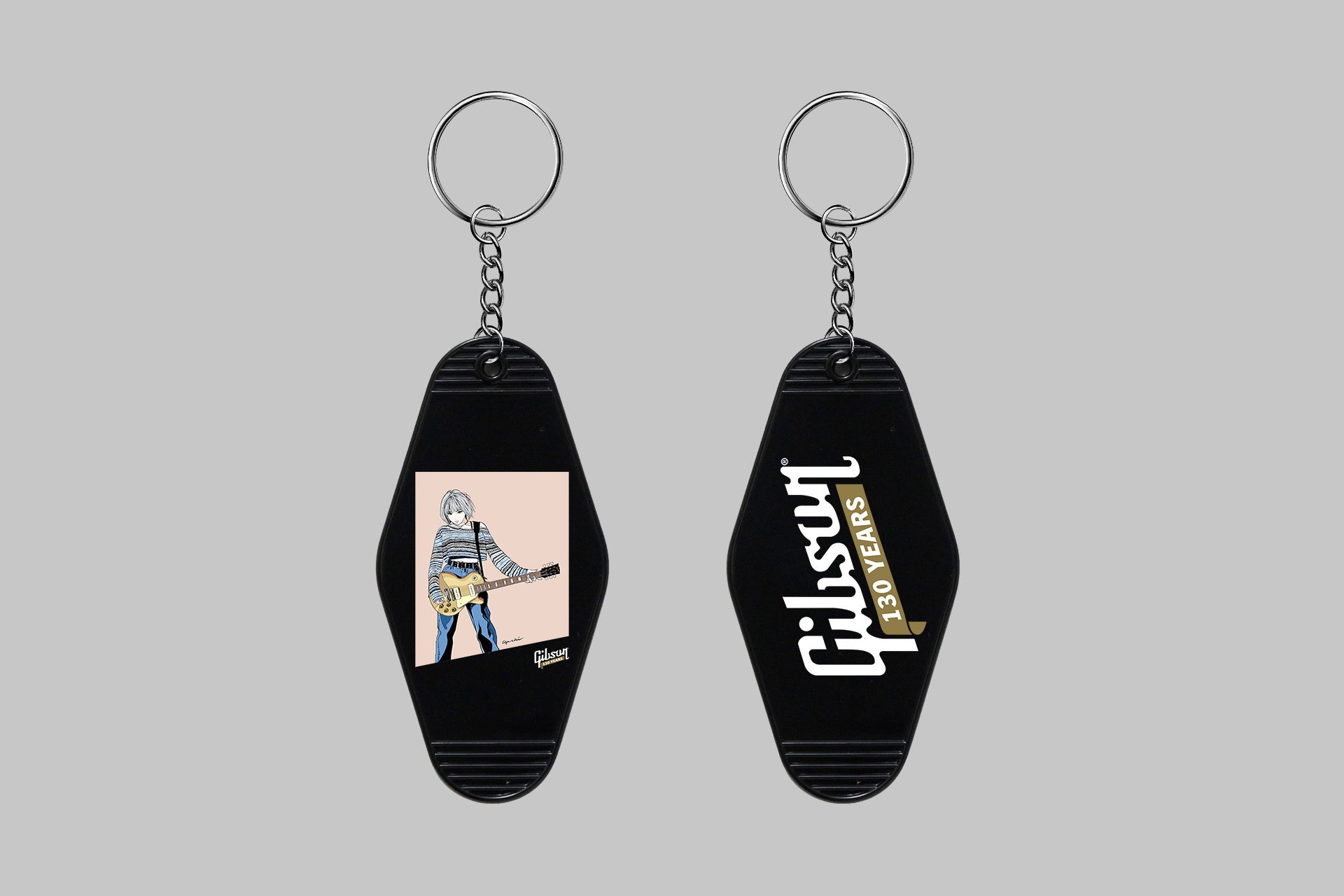 アメリカの古き良きモーテルのルームキーをイメージしたキーホルダー。裏面にはギブソン130周年のオリジナルロゴがプリントされています。