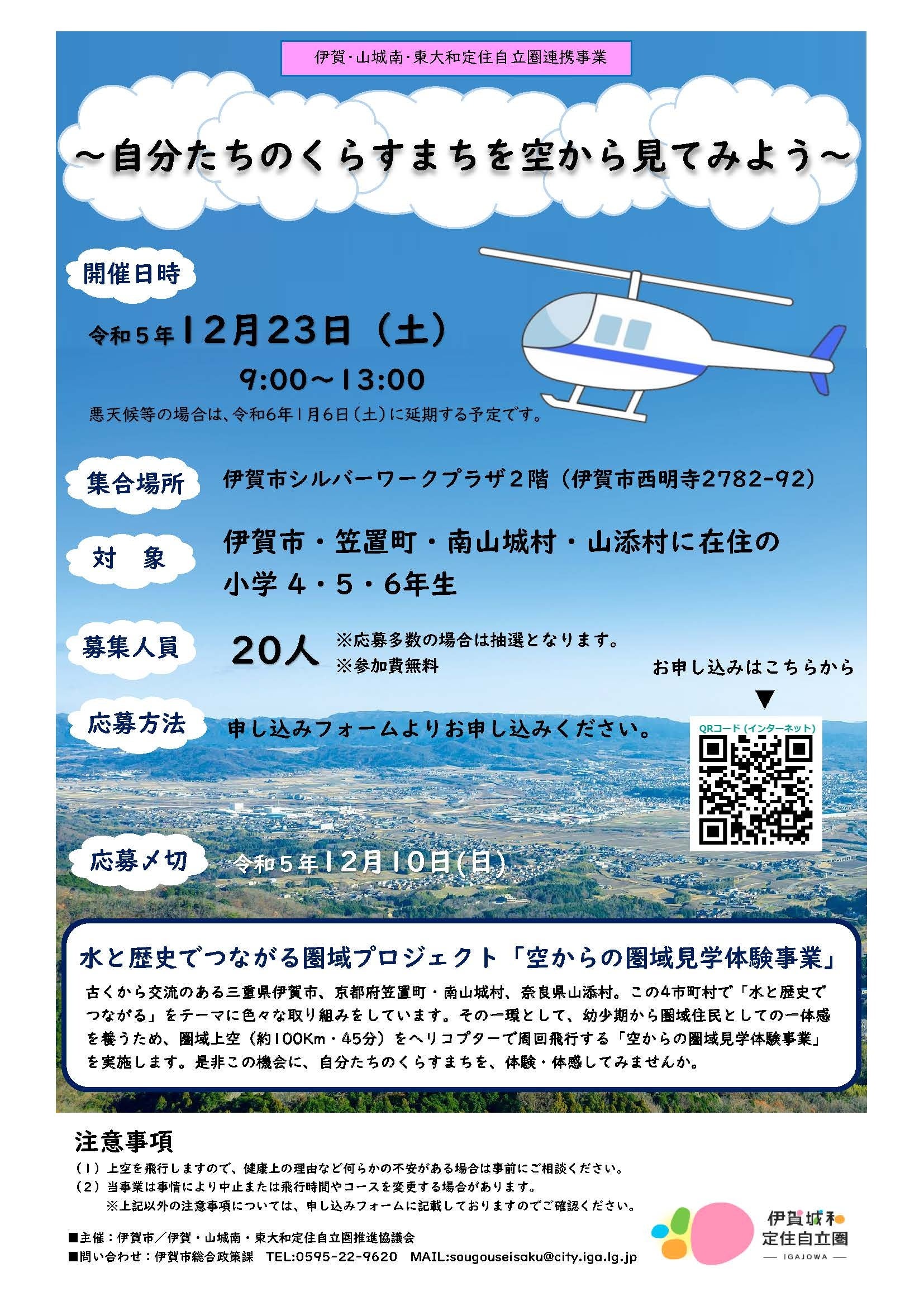 【三重県伊賀市】12/23(土)開催!水と歴史でつながる圏域プロジェクト「空からの圏域見学体験事業」