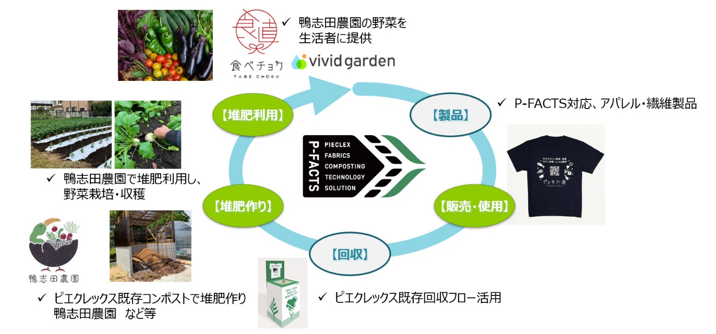 鴨志田農園は、P-FACTS(ピーファクツ)によって生み出された堆肥を活用して栽培した野菜を、生産者特化型ECサイト「食べチョク」において、「環境問題に挑む!アパレル製品を堆肥にして育てた野菜セット」として数量限定で販売いたします。「食べチョク」は、「生産者のこだわりが正当に評価される世界へ」という理念を掲げ、持続可能な農業を支援するプラットフォームです。