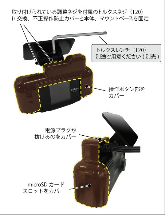 microSDカードの抜き取りや電源プラグの誤抜去、設定変更などの不正操作を防止。