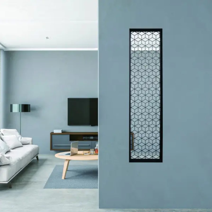 組子細工をモチーフに、金属のデコラティブな格子を重ねて文様を作り出す、今までにない室内用窓。格子が不要の方には「ガラスのみ」という選択肢もあり、機能を絞った使い勝手の良い商品です。