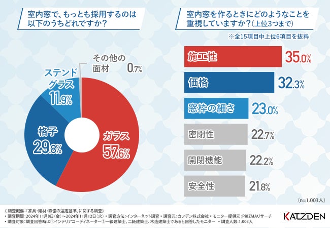 そこで今回、カツデン株式会社(https://kdat.jp/)は、①インテリアコーディネーター②一級建築士、二級建築士、木造建築士を対象に、「家具・建材・設備の選定基準」に関する調査を実施しました。