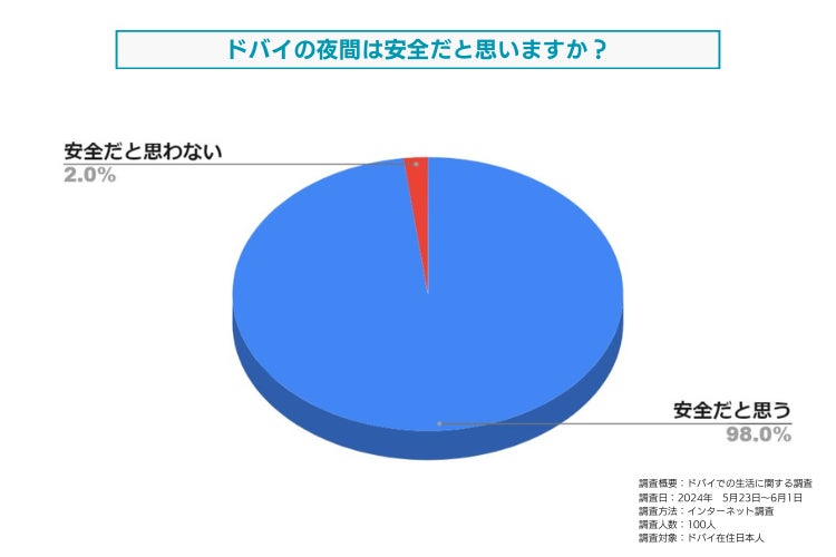 弊社が運営する『ドバイ総合研究所』は、ドバイ在住の日本人を対象に「ドバイの夜間の安全性に対する満足度」についてアンケート調査を実施しました。結果は以下の通りです。