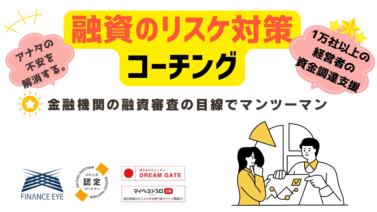 株式会社ファイナンスアイ(本店:大阪府大阪市、代表取締役:田中 琢郎。以下、ファイナンスアイ)は、ゼロゼロ融資返済などの融資返済に悩む起業家・経営者・個人事業主の皆さまに向けて、『融資返済リスケ対策コーチング』を開始します。このサービスでは、融資の返済に悩む経営者が、日本政策金融公庫、信用保証協会付け融資、信用金庫や銀行などと交渉を進めていくためにどのように対応していくべきなのかをお客様の状況にあわせて解決の道筋をプランし、金融機関との交渉を前向きに進めていけるように支援します。ゼロゼロ融資の返済が始まり、多くの経営者が困窮しているなか、融資の返済に苦労している経営者は誰にも相談することができないでいます。融資の返済にすら行き詰り資金繰りに困っている経営者を誰が助けるのでしょうか?火中の栗は誰も拾いたくないので、誰も助けようとしません。ファイナンスアイは、2014年の創業以来、日本全国の起業家・中小企業の経営を支援し、多くの企業再生・経営改善にも対応してきました。他の士業先生やコンサルタントが拒絶したハードな案件にも対応してきました。多くの経営者は金融機関と融資返済のリスケや経営改善などの対応を経験した事がありません。そのような対応ができる事を知らない経営者もいます。