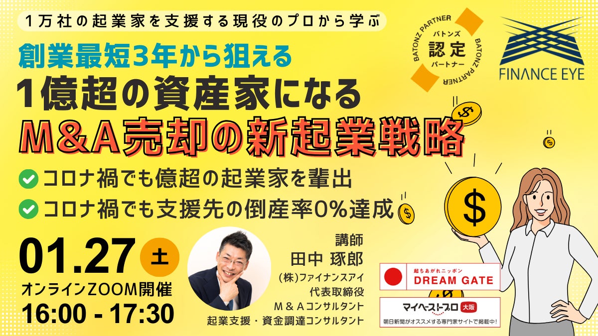 スタートアップ起業などのゼロイチ創業やM&Aで起業を考えておられる方が、創業から数年でM&A売却によるイグジットで1億超の資産家になるための成功者の起業戦略について伝えます。