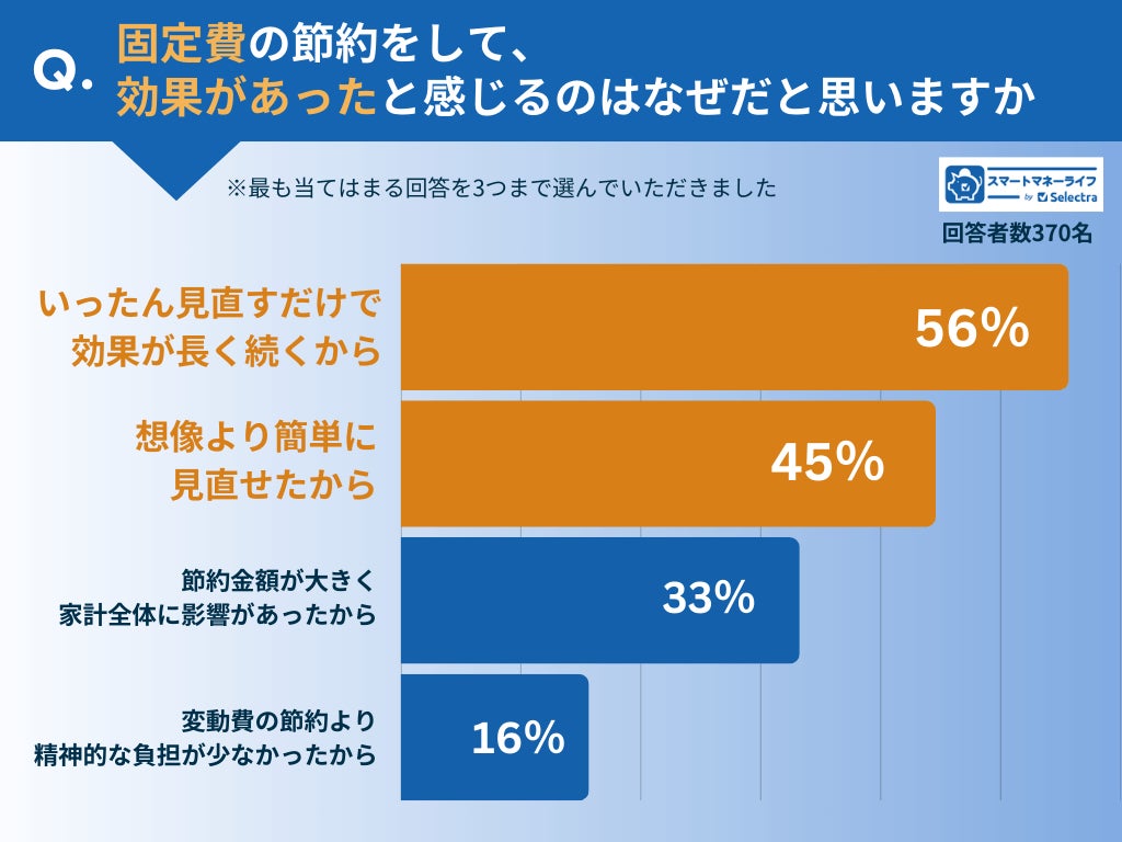 効果を感じた理由は「いったん見直すだけで、節約効果が長く続くから」