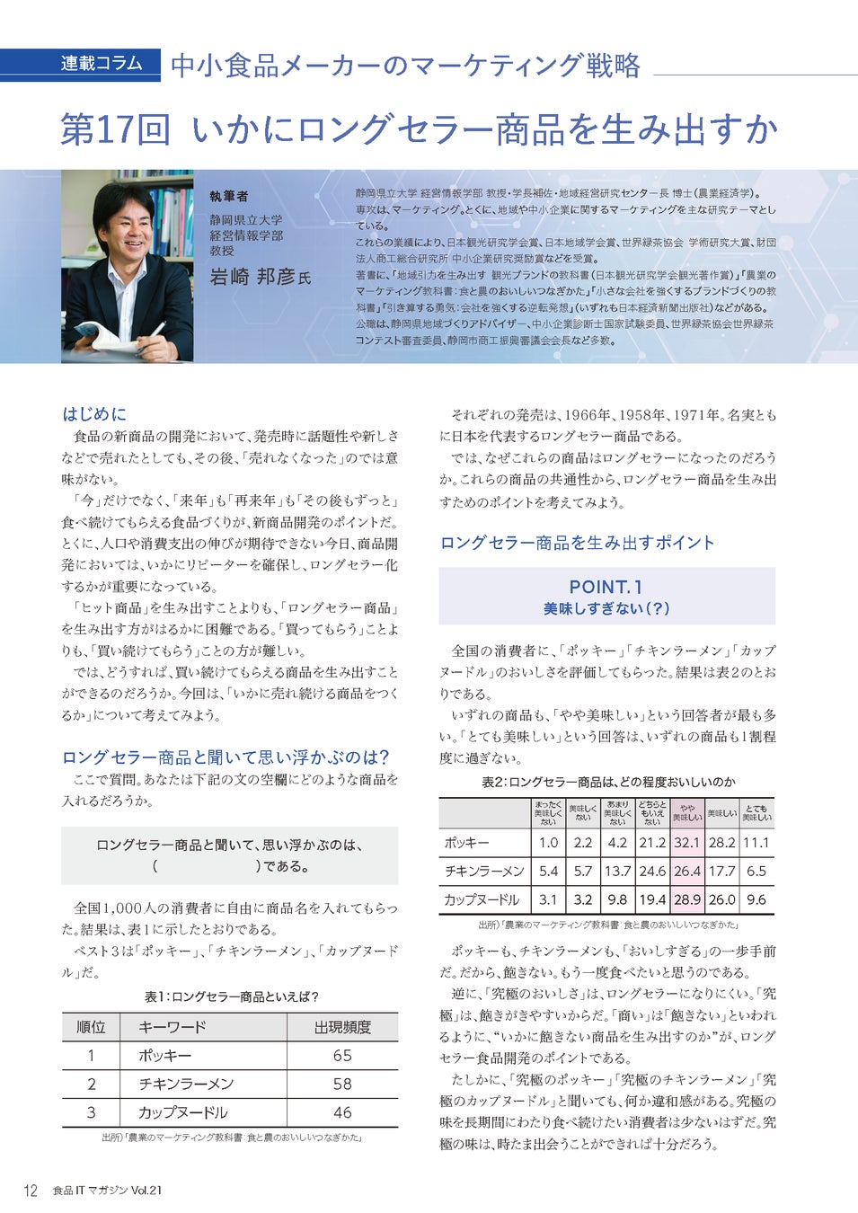 連載コラム「中小食品メーカーのマーケティング戦略」では、いかにロングセラー商品を生み出すかについて、静岡県立大学 岩崎邦彦教授に解説いただきます。