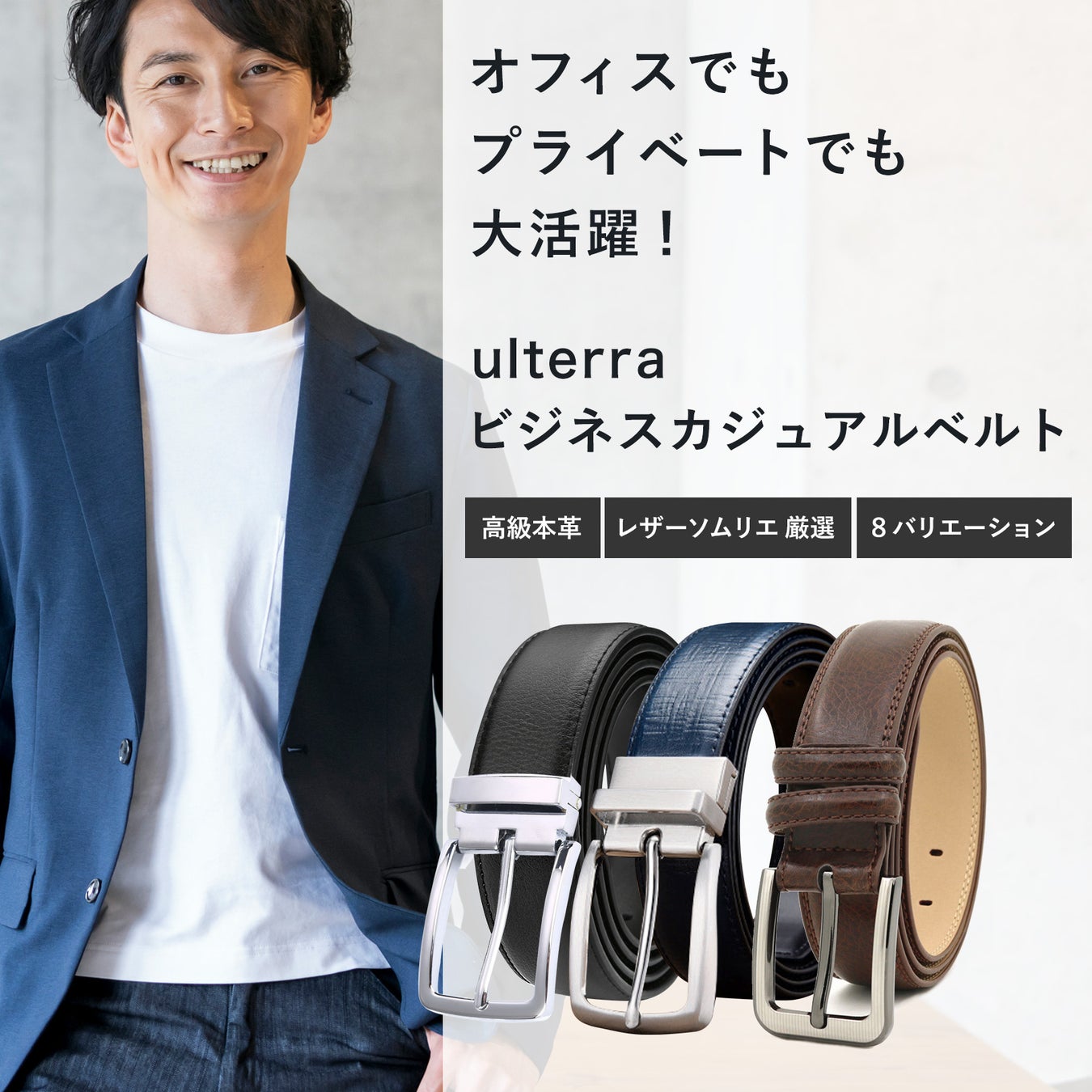 今回紹介した第2弾のメンズベルト、第1弾のメンズベルトのいずれもulterra公式ストアで発売中です。